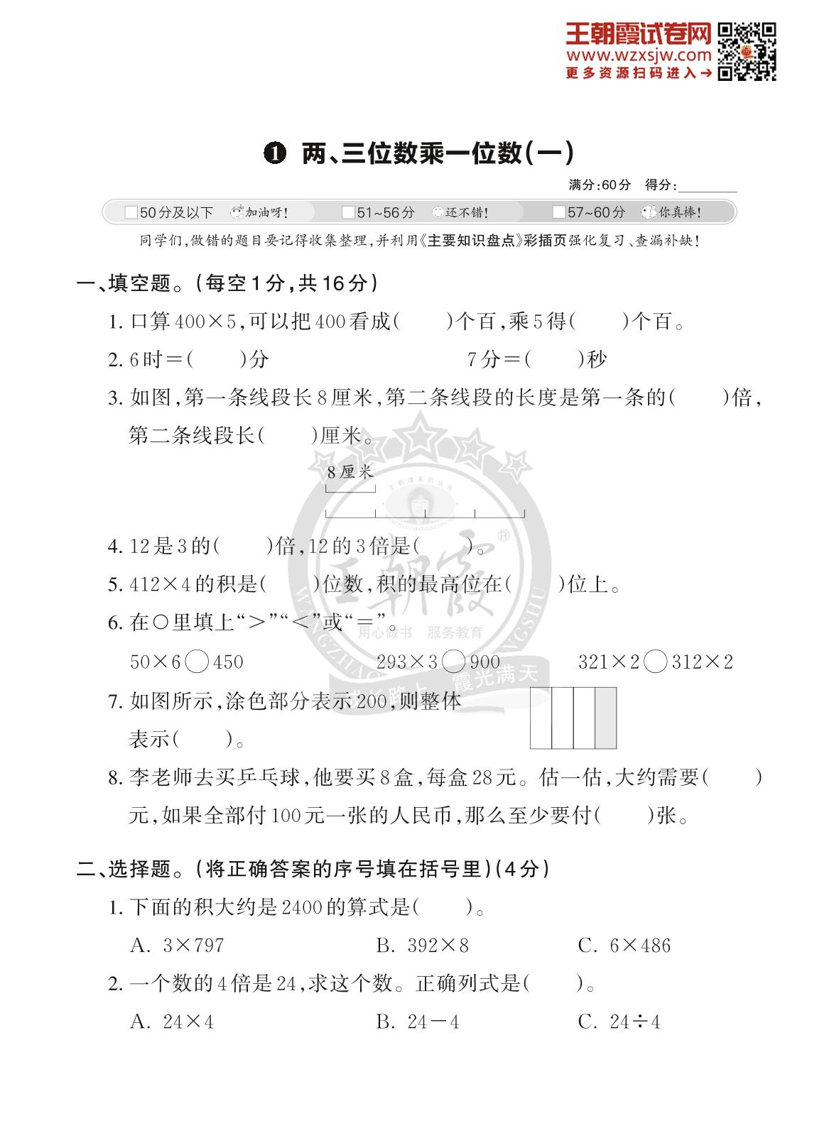 苏教版·三年级·数学基础知识过关练_R221130115217974