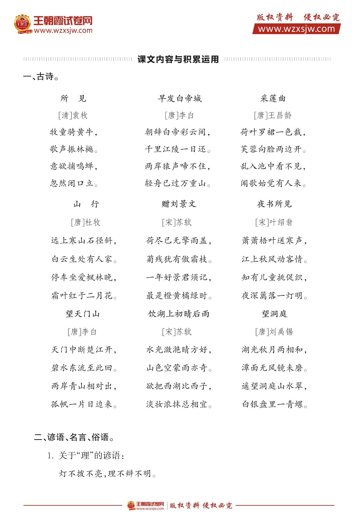 人教版·三年级上册·语文1~8单元必背课文、日积月累梳理