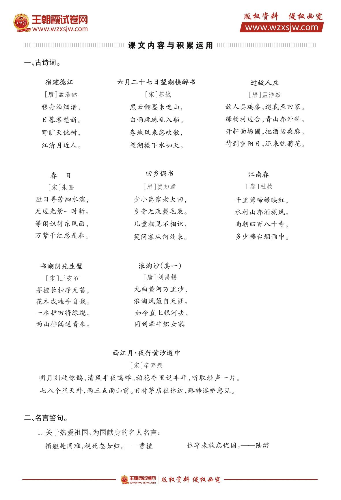 人教版·六年级上册·语文1~8单元必背课文、日积月累梳理