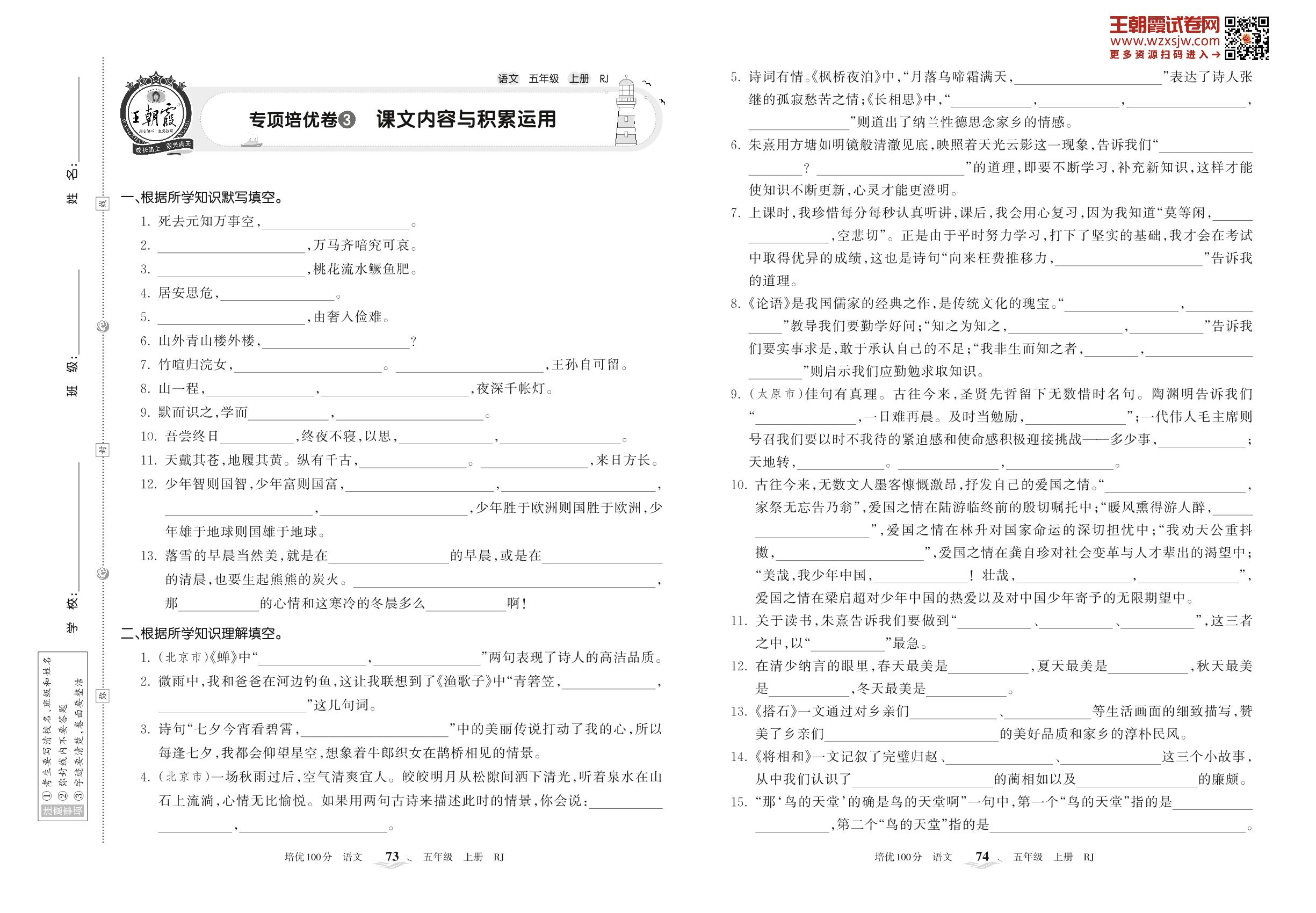 【易考突破】人教版·五年级上册·语文课文内容与积累运用专项训练