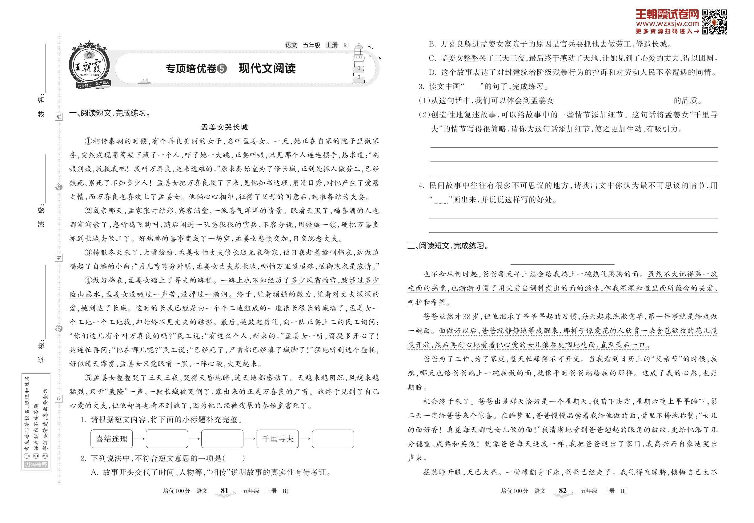 【易考突破】人教版·五年级上册·语文现代文专项训练