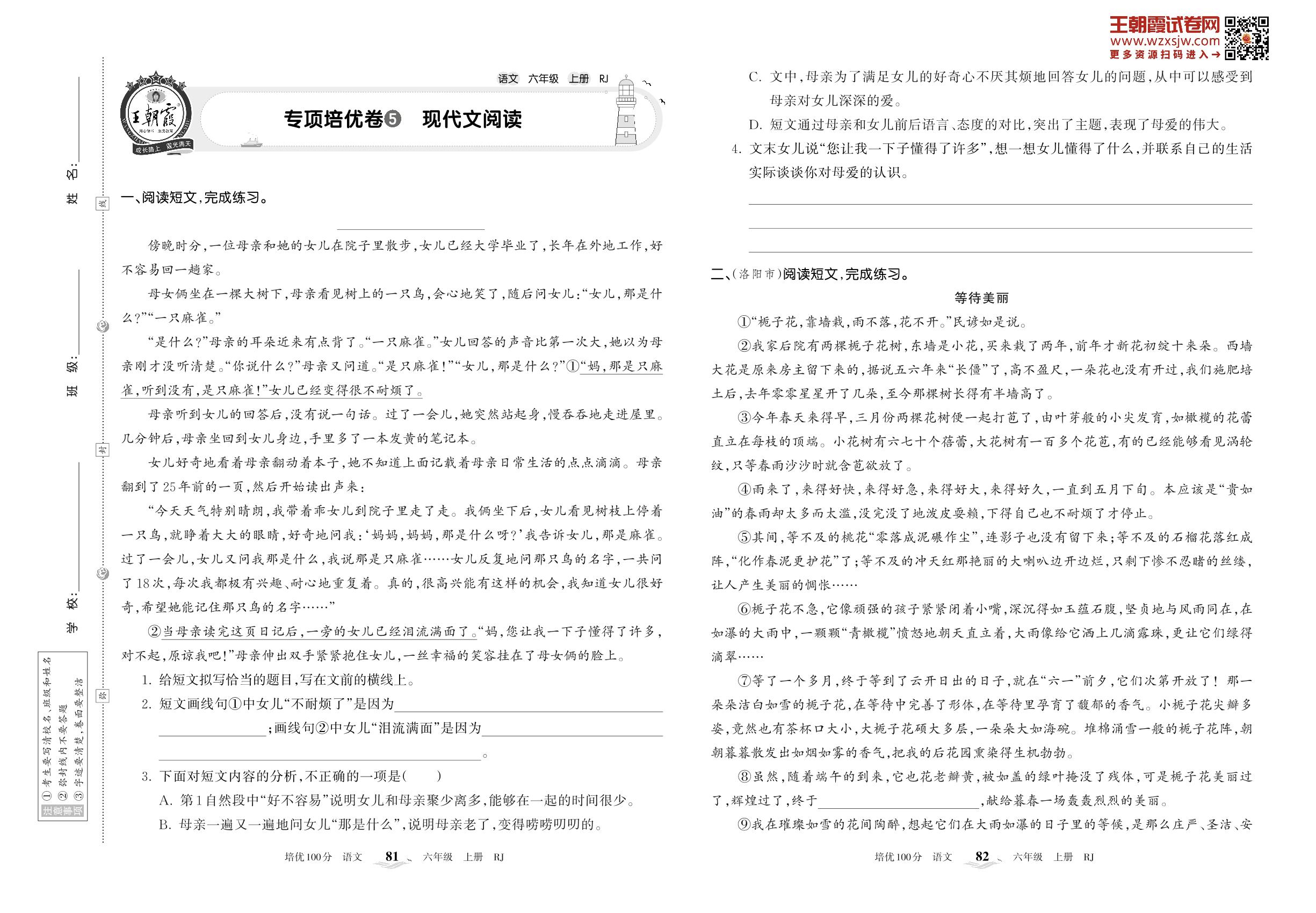 【易考突破】人教版·六年级·语文现代文阅读专项训练