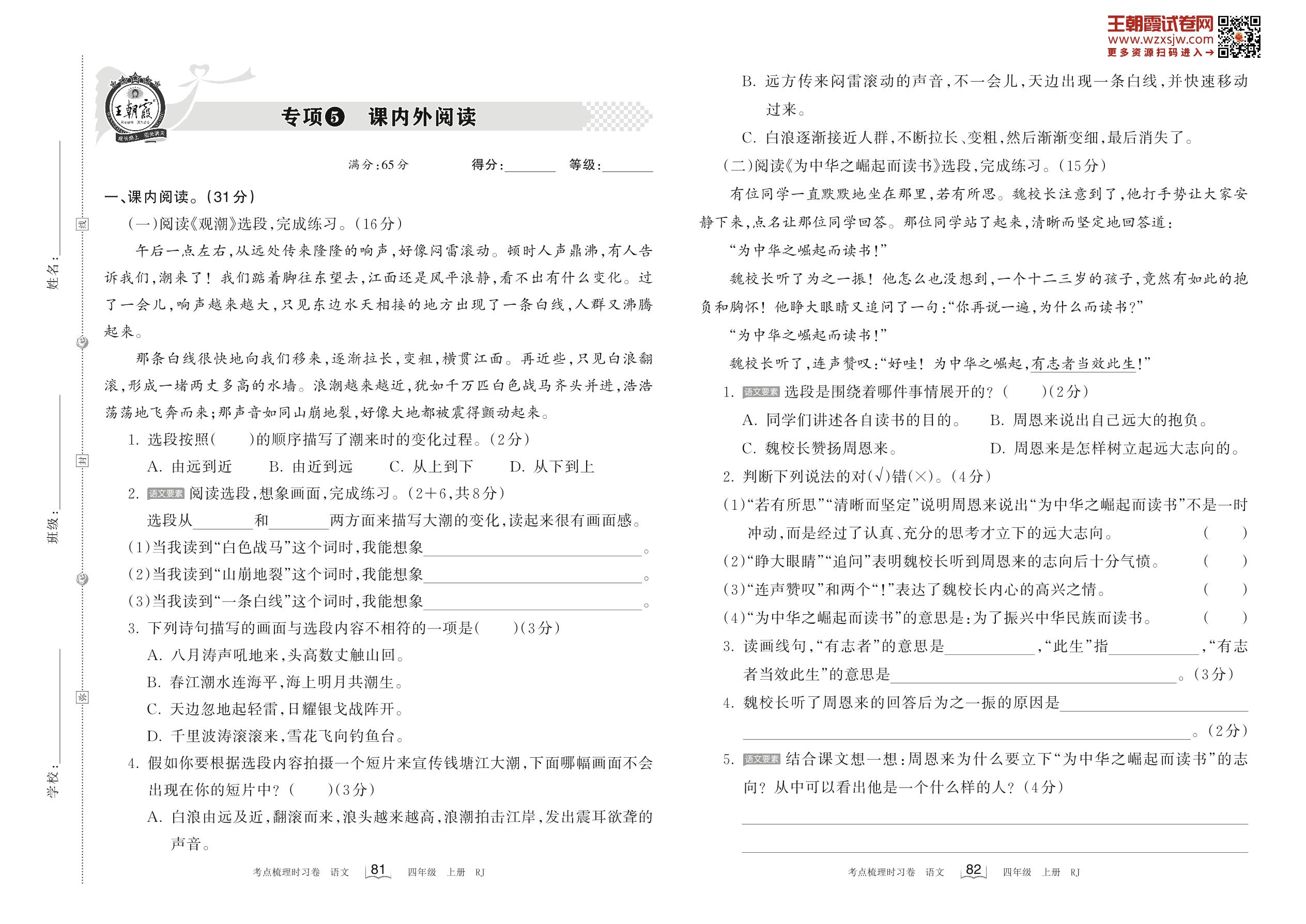 【易考突破】人教版·四年级上册·语文课内外阅读专项训练