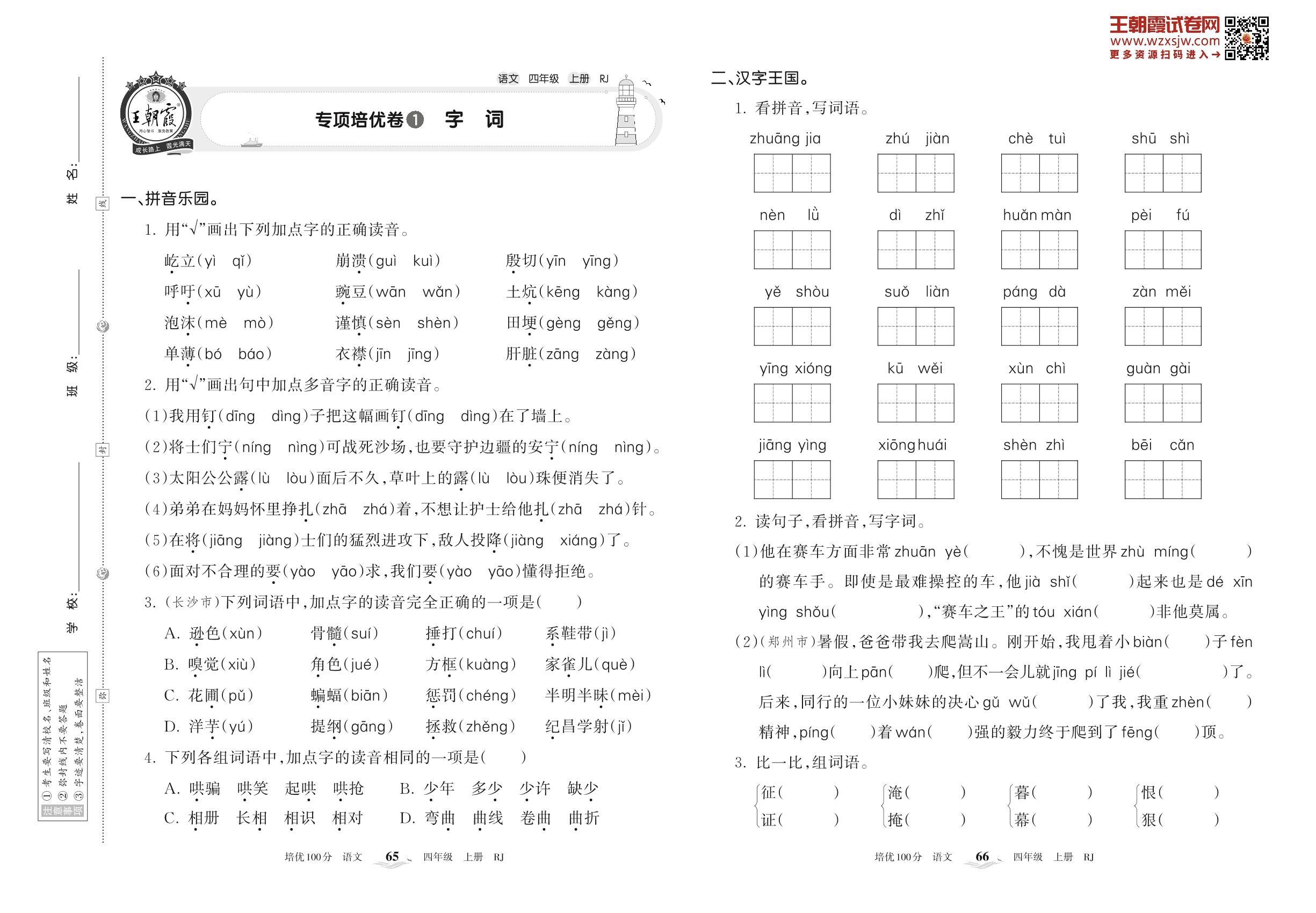 【易考突破】人教版·四年级上册·语文字词专项训练