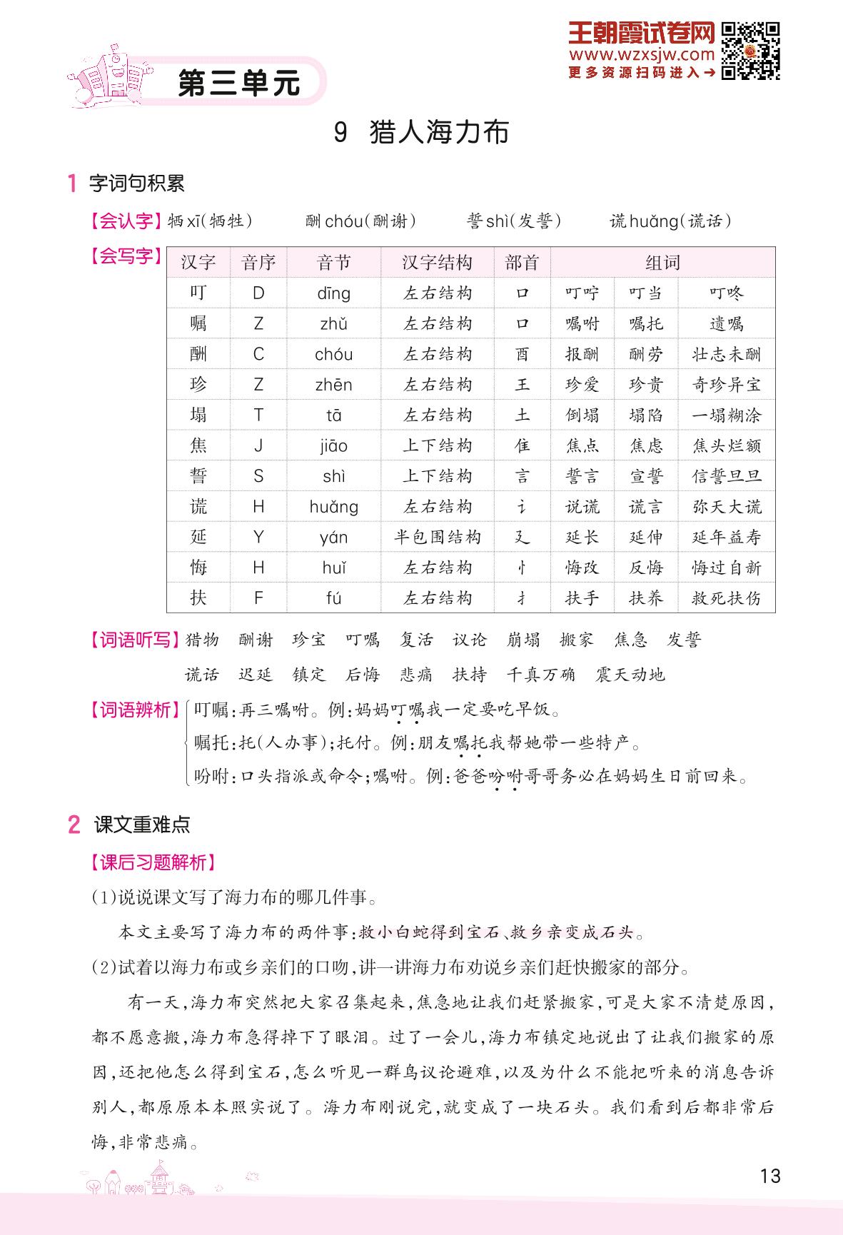 人教版·五年级上册·语文字词句段、课后习题、语文园地知识点梳理(第三单元)
