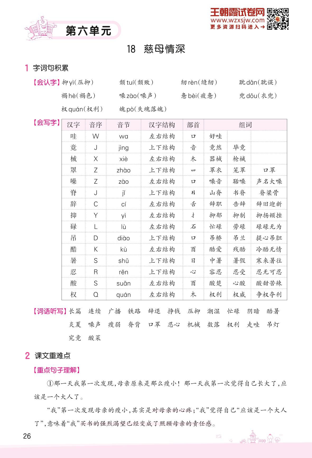 人教版·五年级上册·语文字词句段、课后习题、语文园地知识点梳理(第六单元)