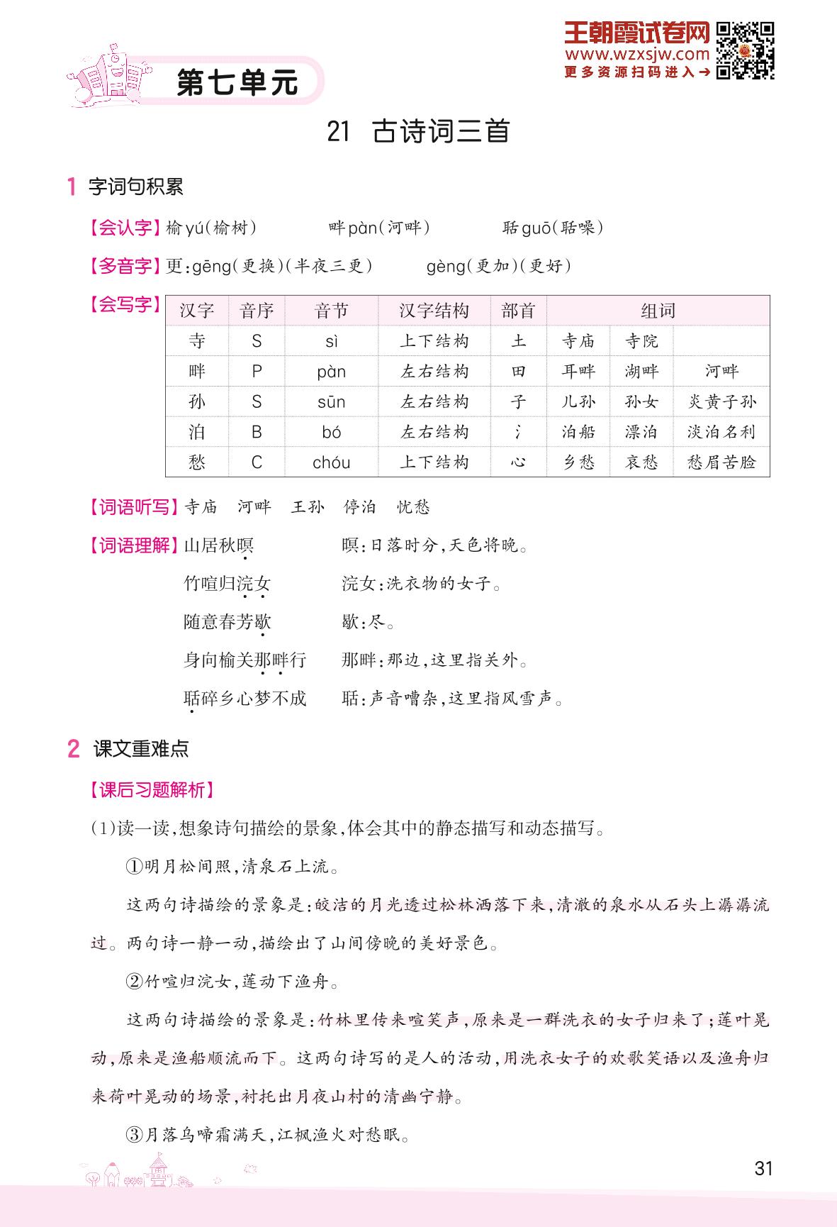 人教版·五年级上册·语文字词句段、课后习题、语文园地知识点梳理(第七单元)