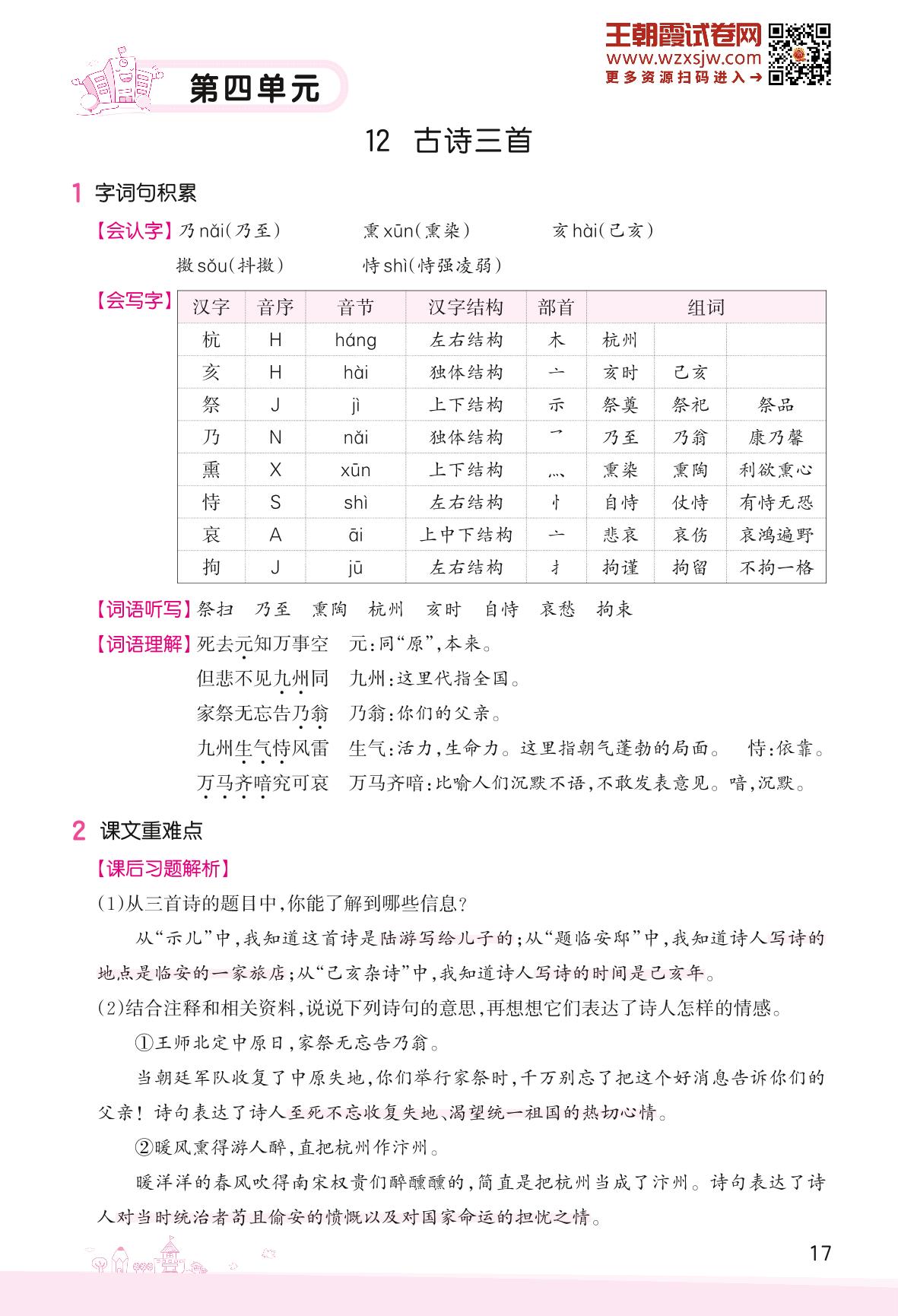 人教版·五年级上册·语文字词句段、课后习题、语文园地知识点梳理(第四单元)