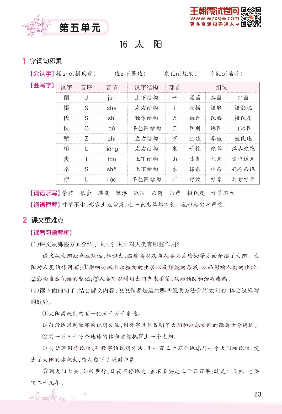 人教版·五年级上册·语文字词句段、课后习题、语文园地知识点梳理(第五单元)