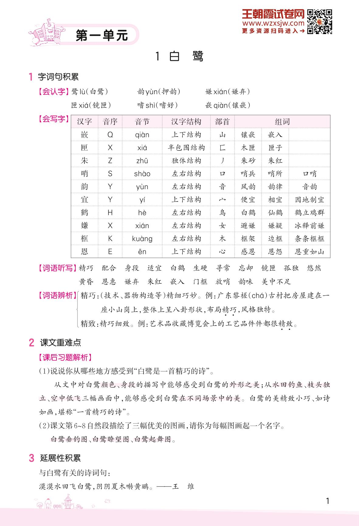 人教版·五年级上册·语文字词句段、课后习题、语文园地知识点梳理(第一单元)