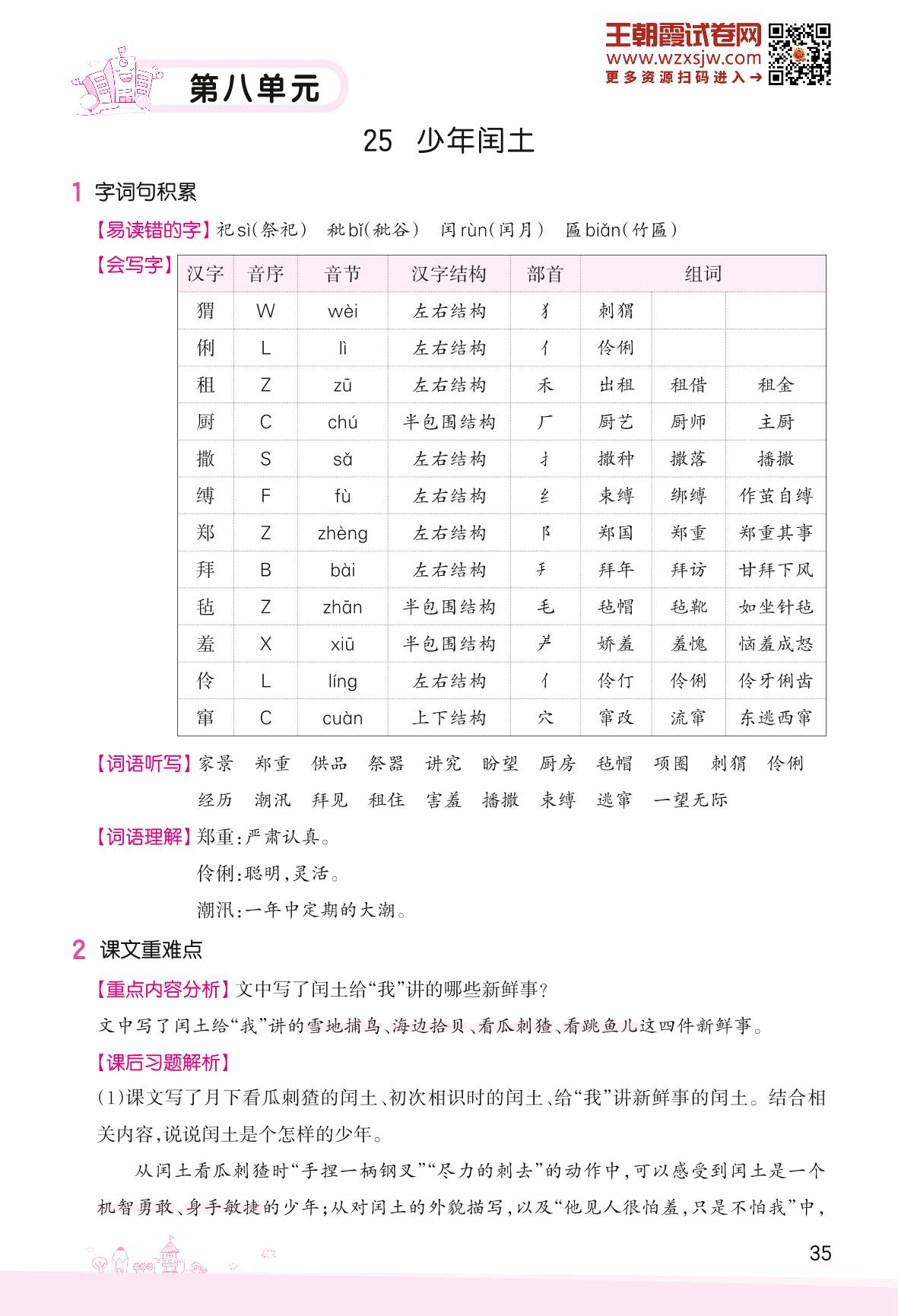 人教版·六年级上册·语文字词句段、课后习题、语文园地知识点梳理(第八单元)