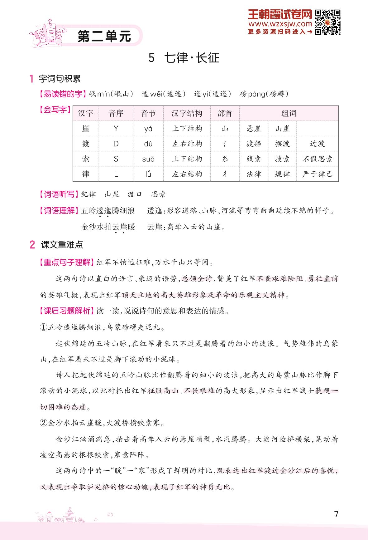 人教版·六年级上册·语文字词句段、课后习题、语文园地知识点梳理(第二单元)
