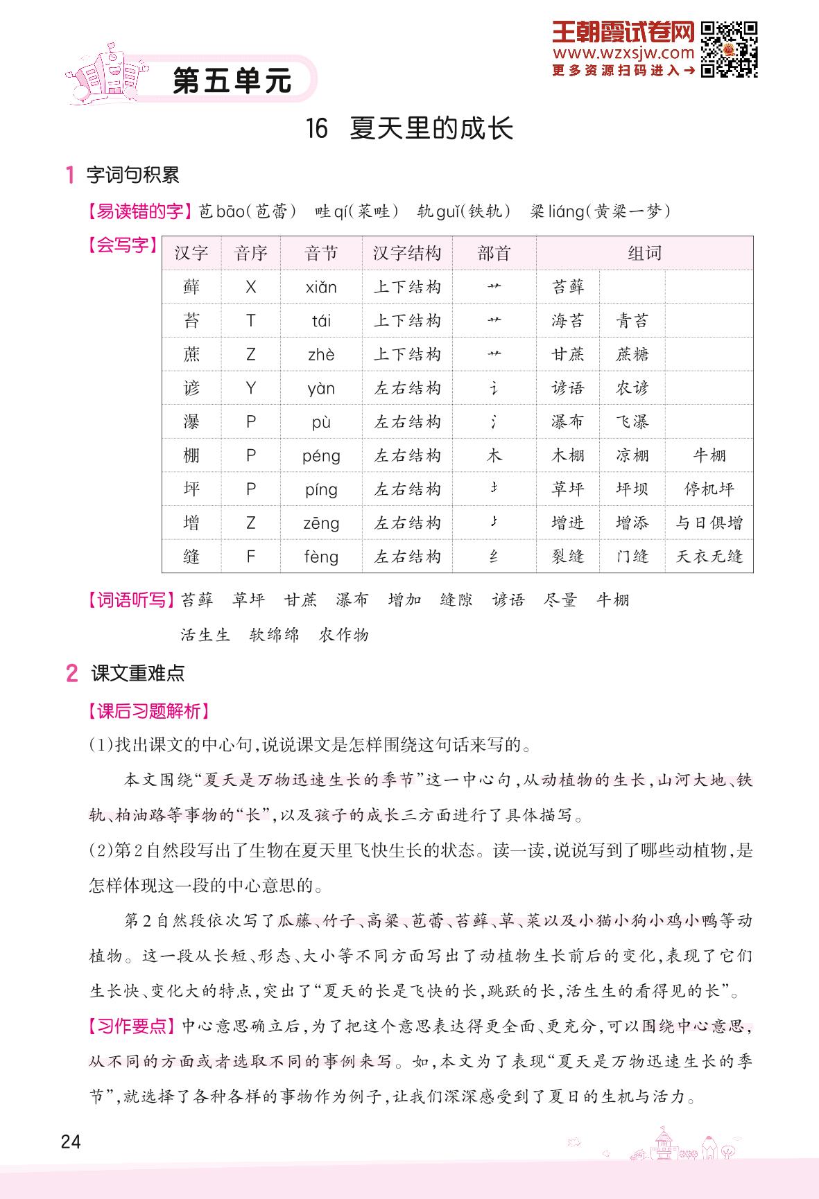人教版·六年级上册·语文字词句段、课后习题、语文园地知识点梳理(第五单元)