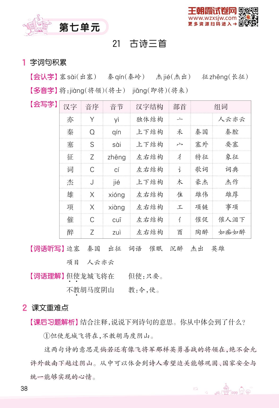 人教版·四年级上册·语文字词句段、课后习题、语文园地知识点梳理(第七单元)