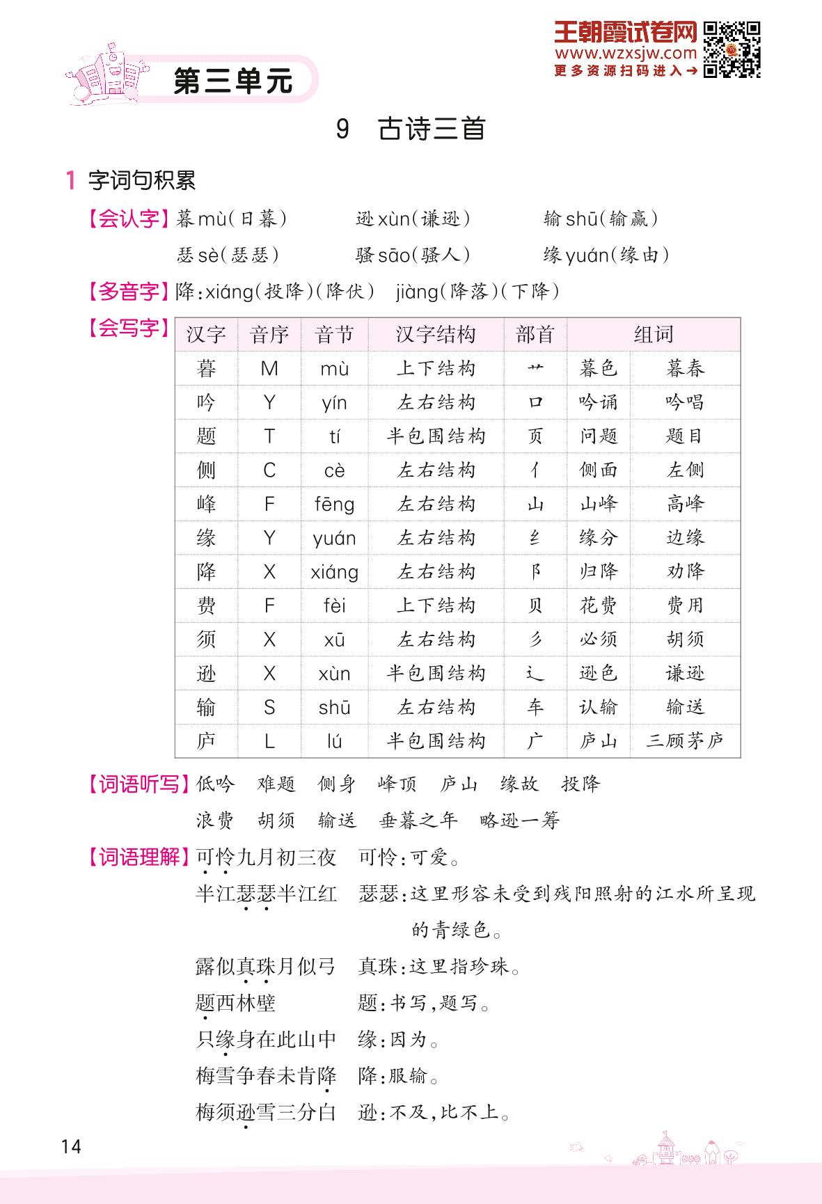 人教版·四年级上册·语文字词句段、课后习题、语文园地知识点梳理(第三单元)
