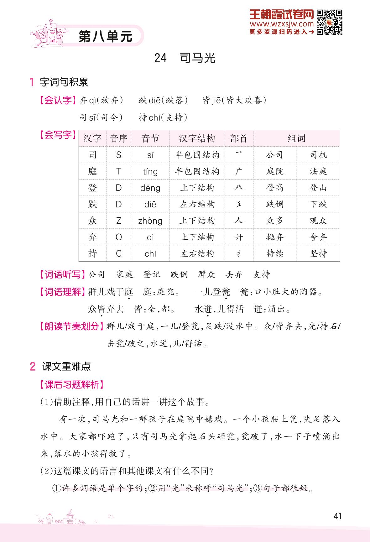 人教版·三年级上册·语文字词句段、课后习题、语文园地知识点梳理(第八单元)