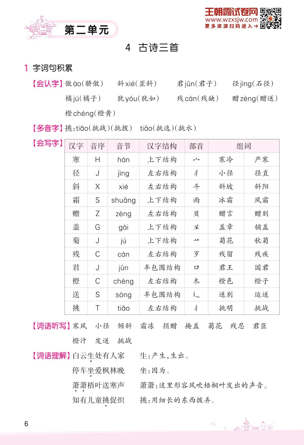 人教版·三年级上册·语文字词句段、课后习题、语文园地知识点梳理(第二单元)