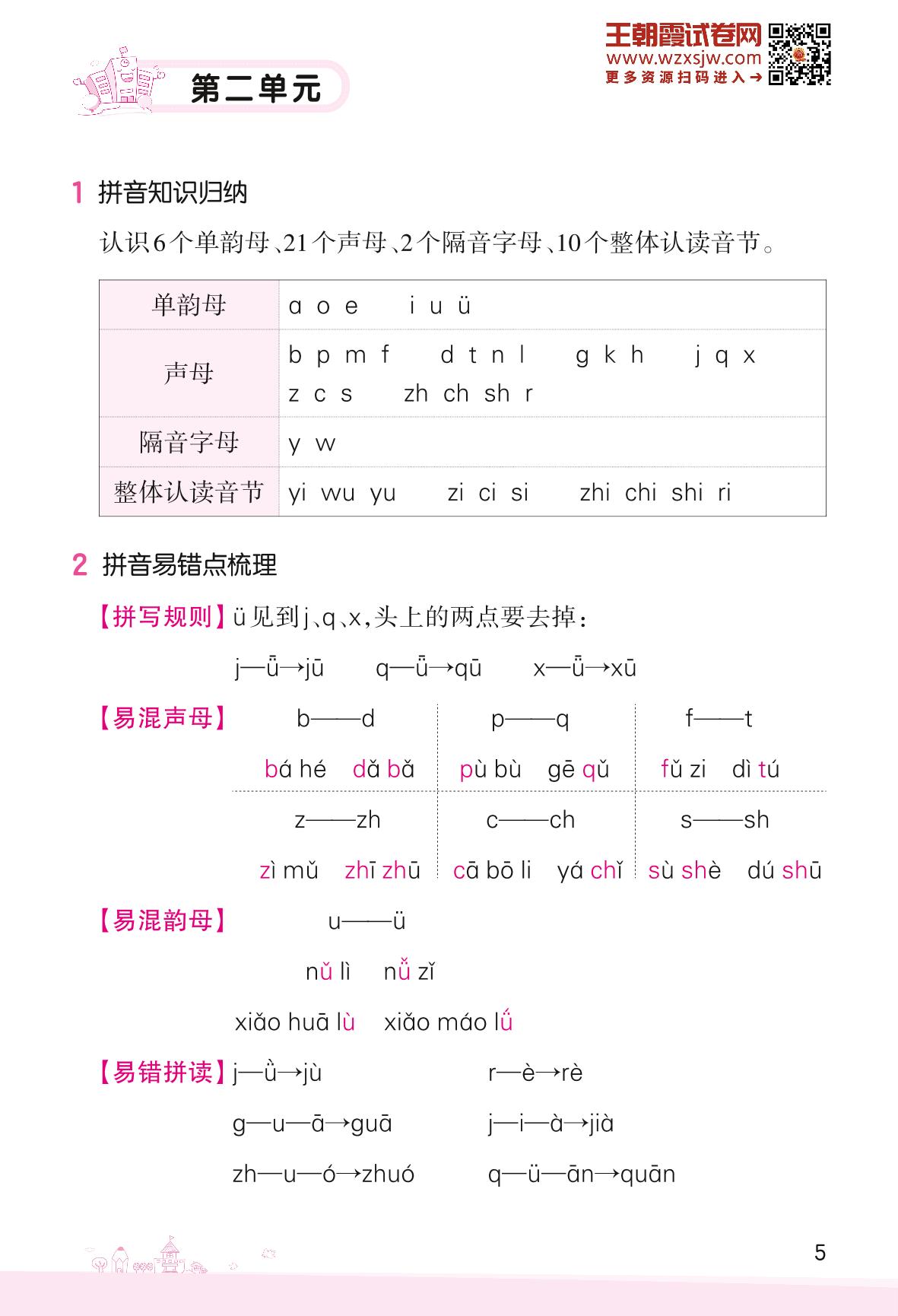 人教版·一年级上册·语文字词句段、课后习题、语文园地知识点梳理(第二单元)