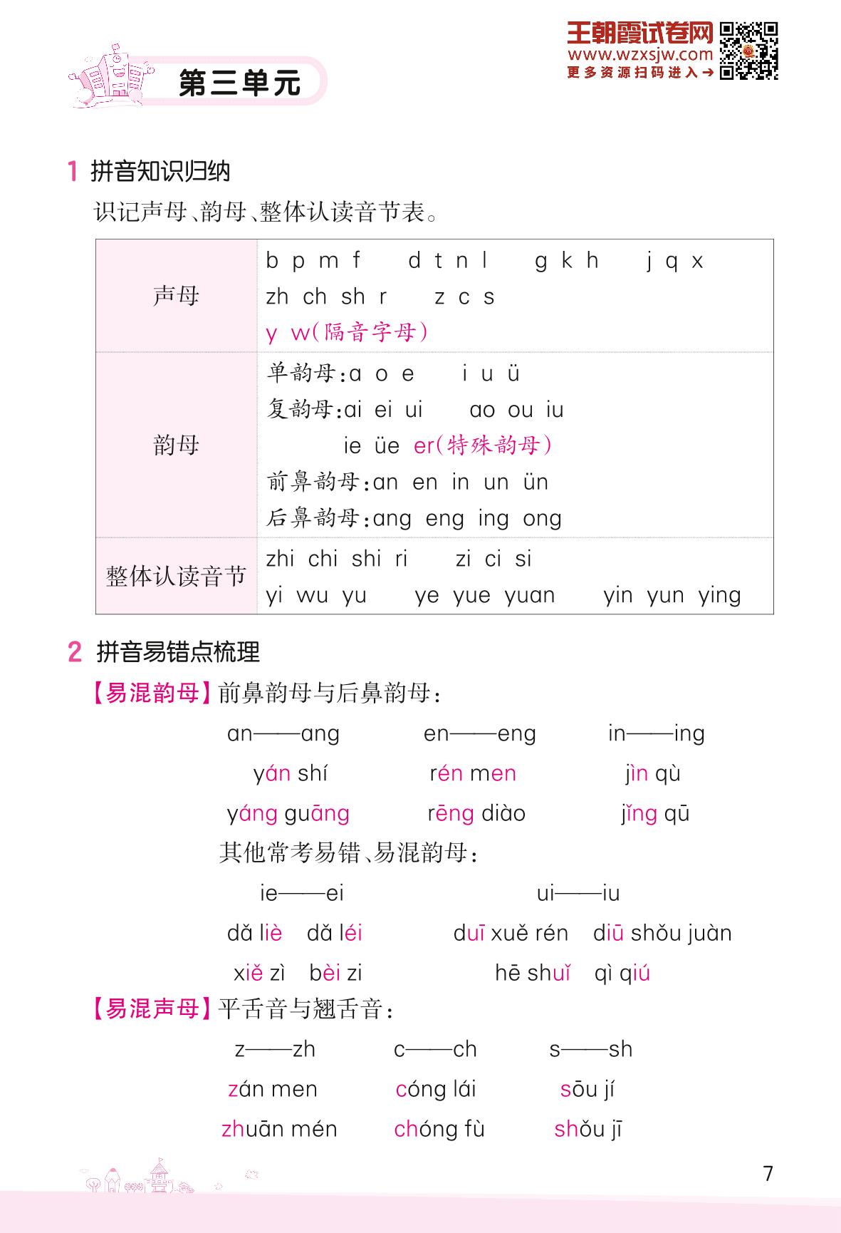 人教版·一年级上册·语文字词句段、课后习题、语文园地知识点梳理(第三单元)