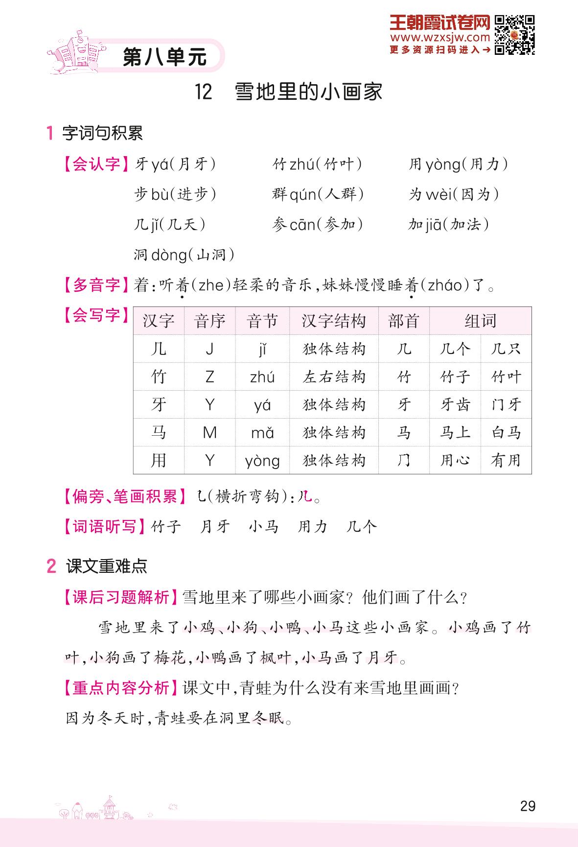 人教版·一年级上册·语文字词句段、课后习题、语文园地知识点梳理(第八单元)