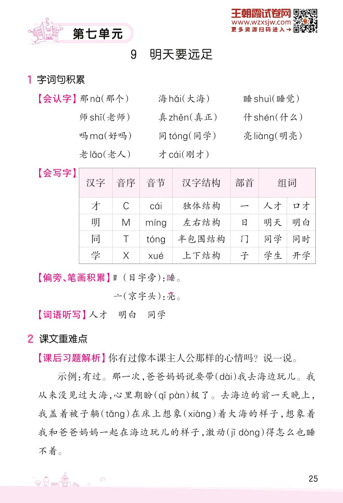 人教版·一年级上册·语文字词句段、课后习题、语文园地知识点梳理(第七单元)