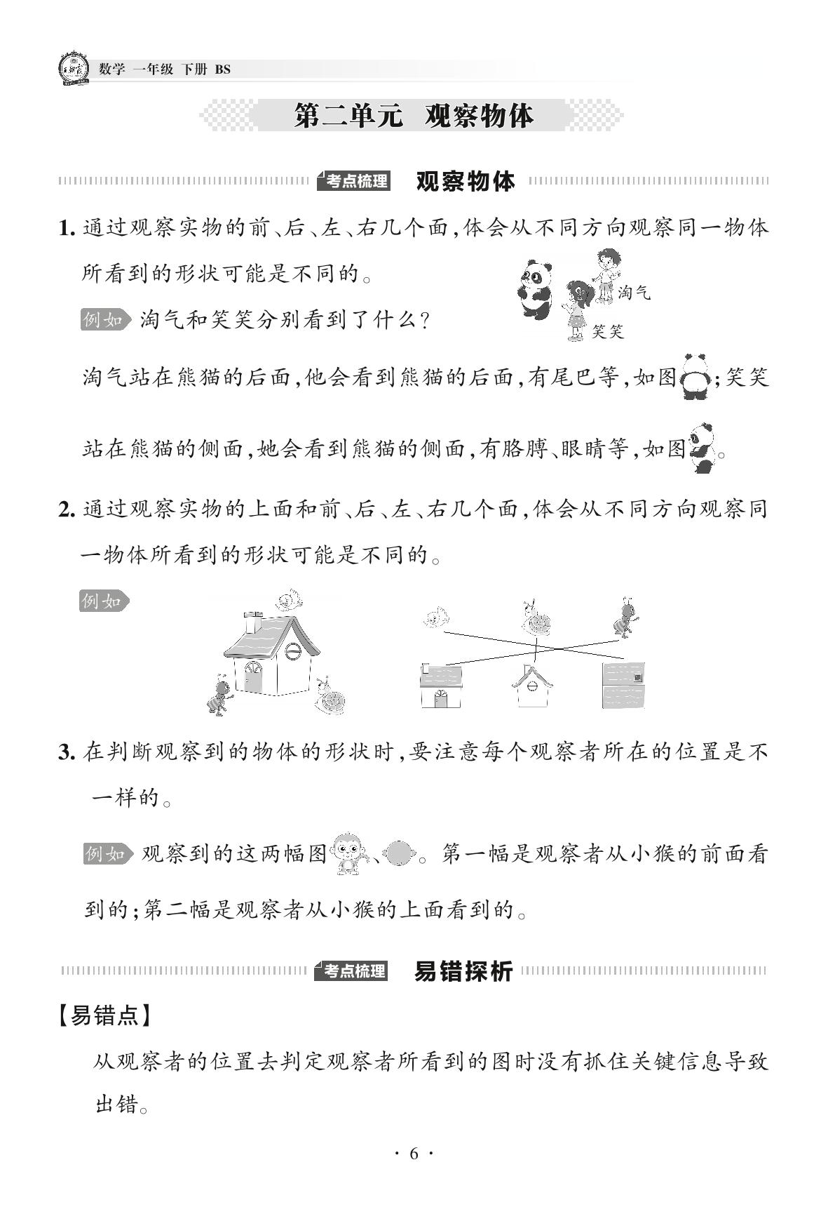 2022下册一年级数学北师版 考点梳理手册——第二单元 观察物体
