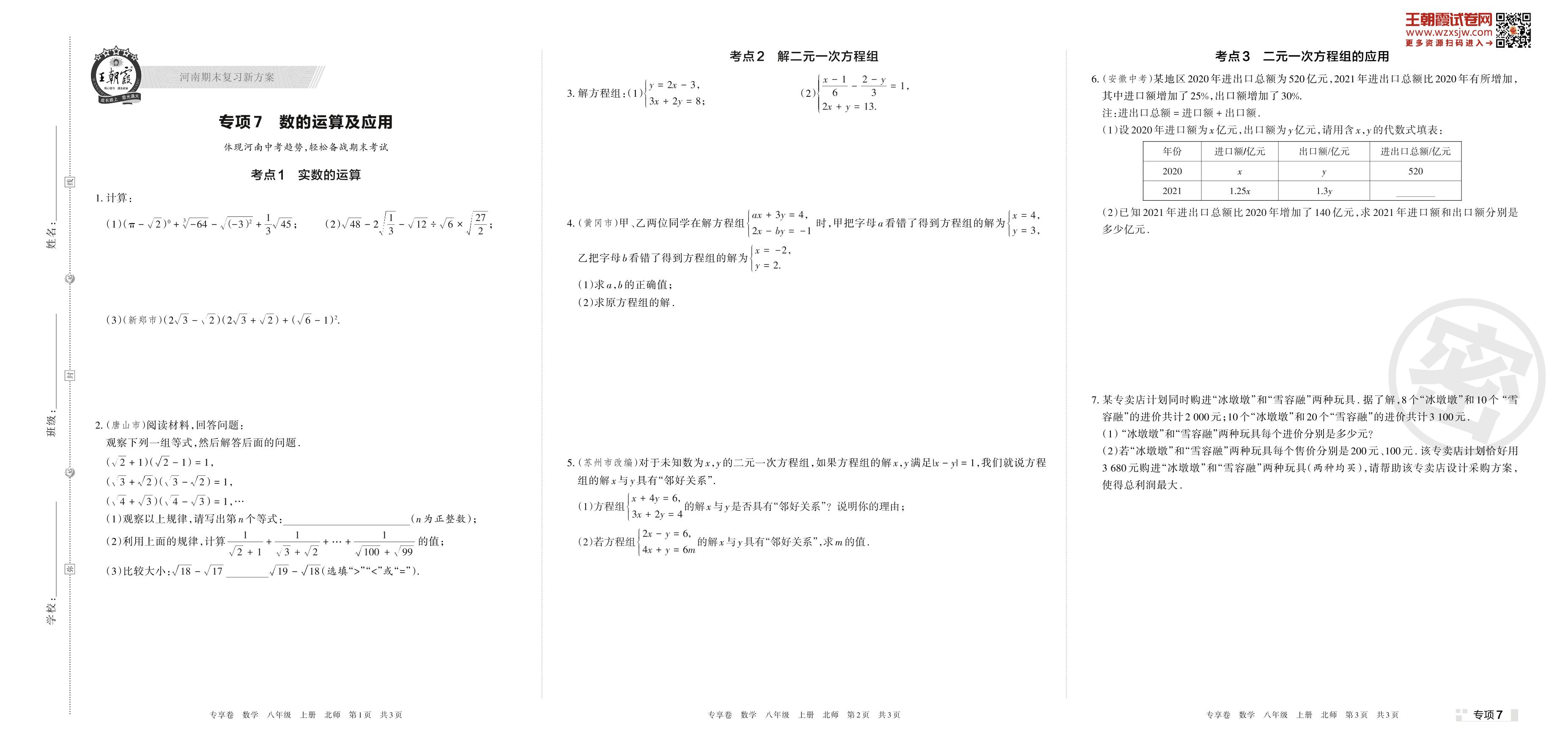 王朝霞期末专项卷——数的运算及应用八年级上册数学(北师版)【7】