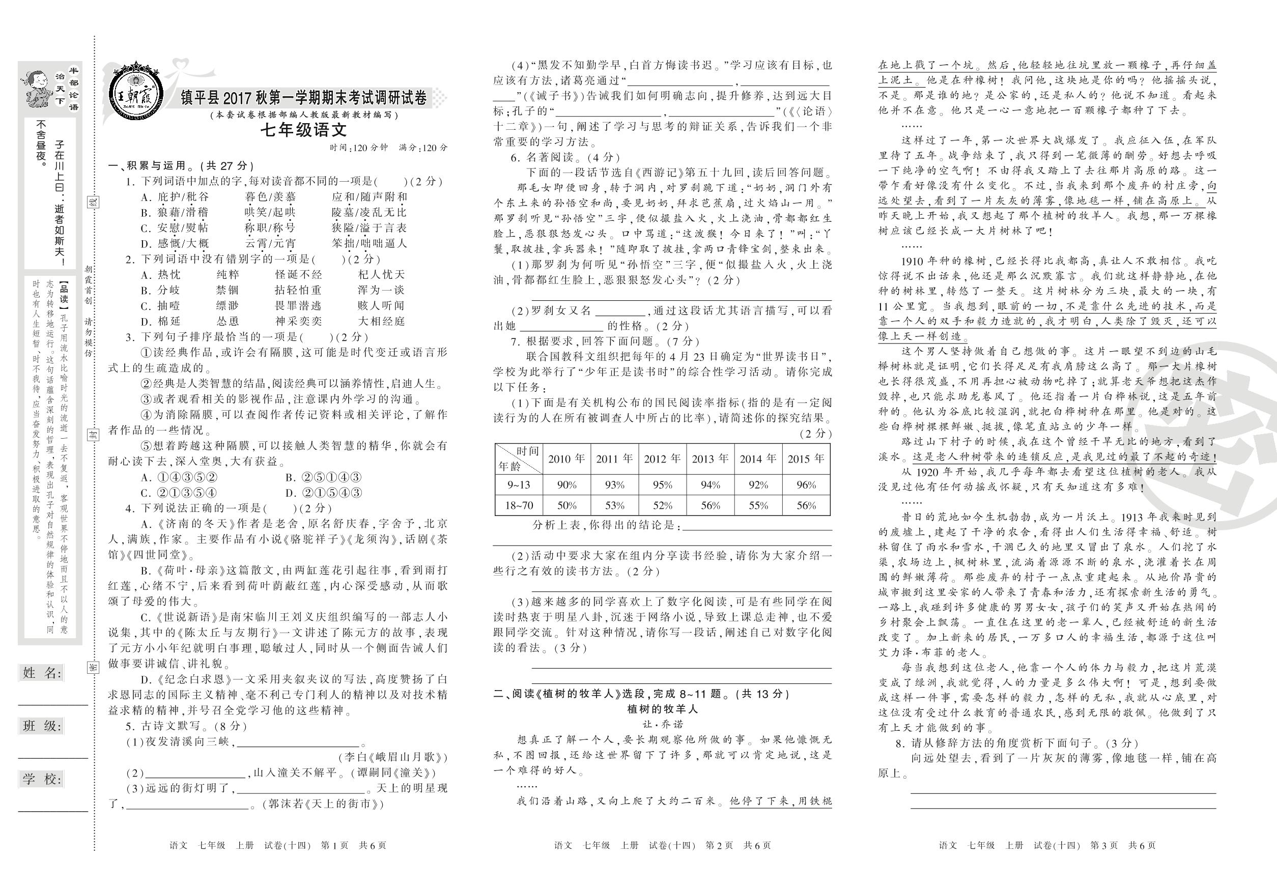 2016-2017学年第一学期南阳市镇平县七年级语文试卷(人教版)【14】