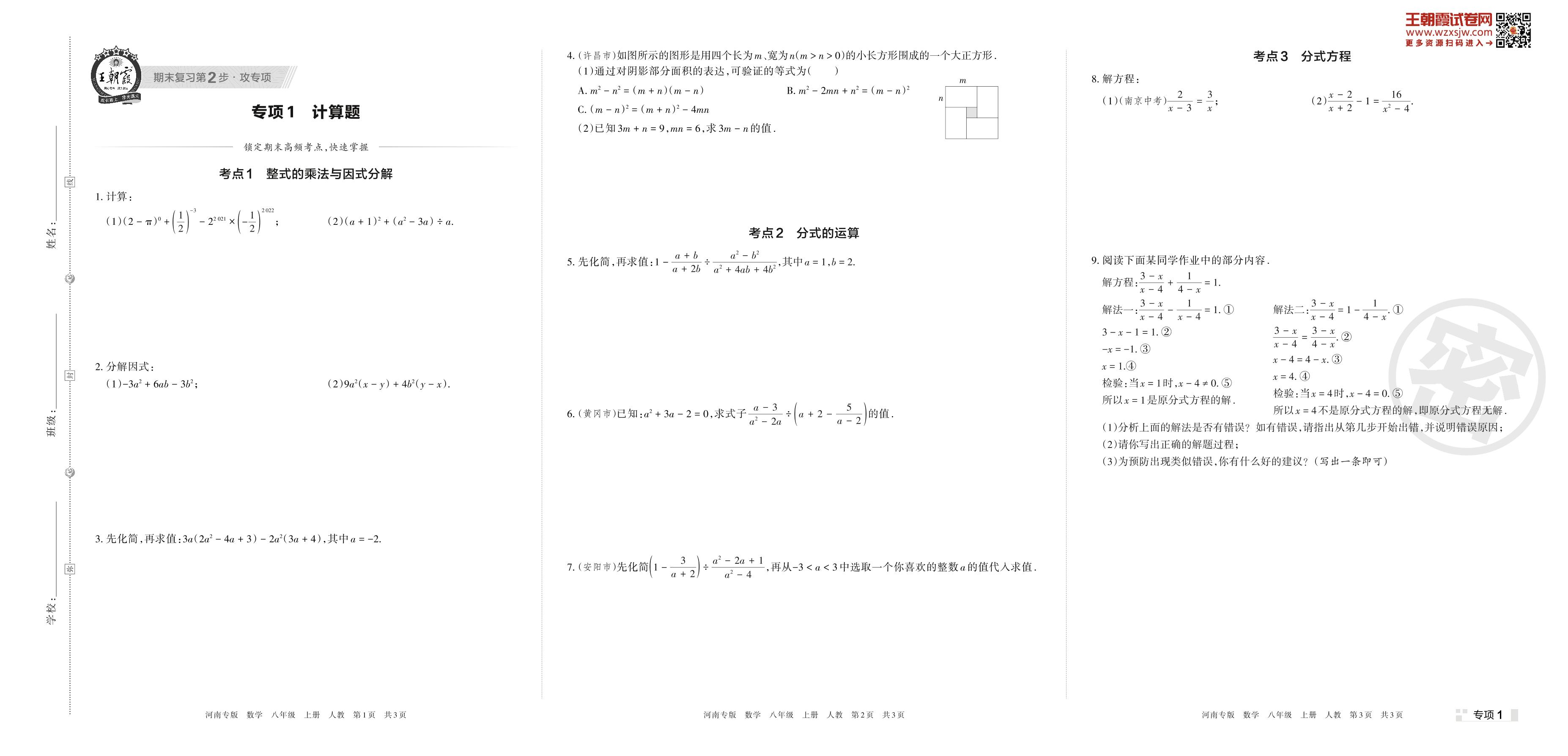 王朝霞期末专项卷——计算题八年级上册数学(人教版)【1】