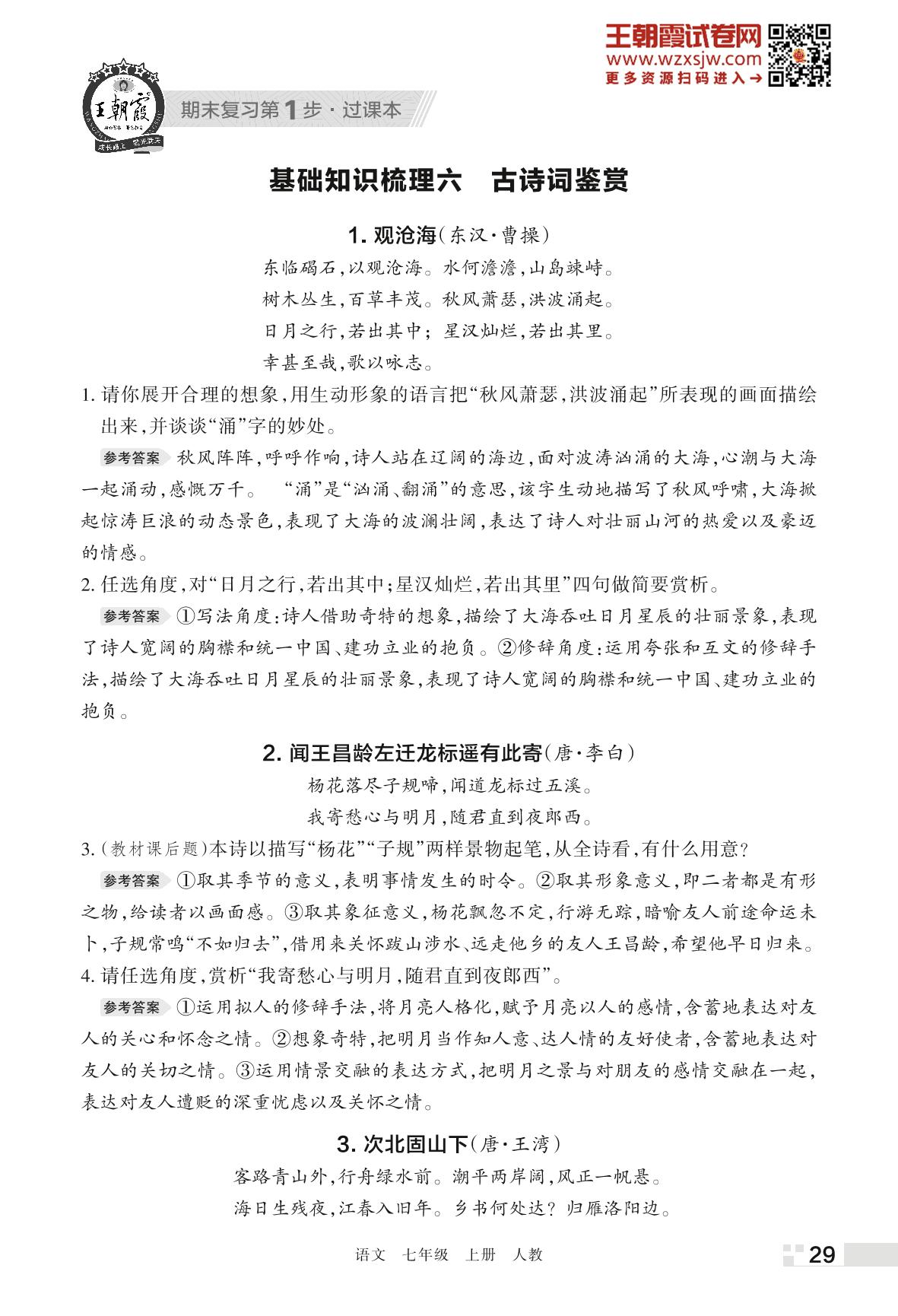 王朝霞期末过课本——基础知识梳理六 古诗词鉴赏七年级上册语文(人教版)