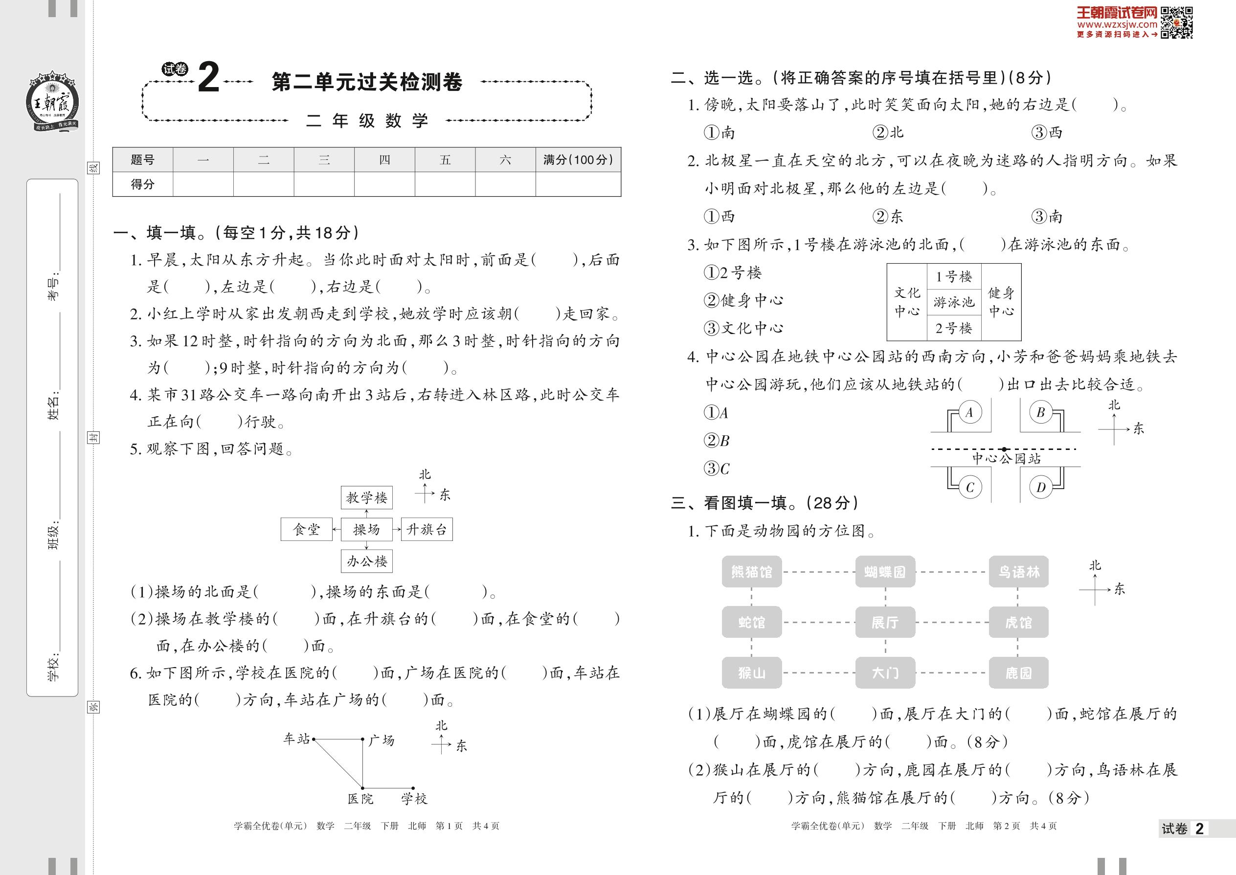 2023下册二年级数学北师版 试卷2 第二单元过关检测卷