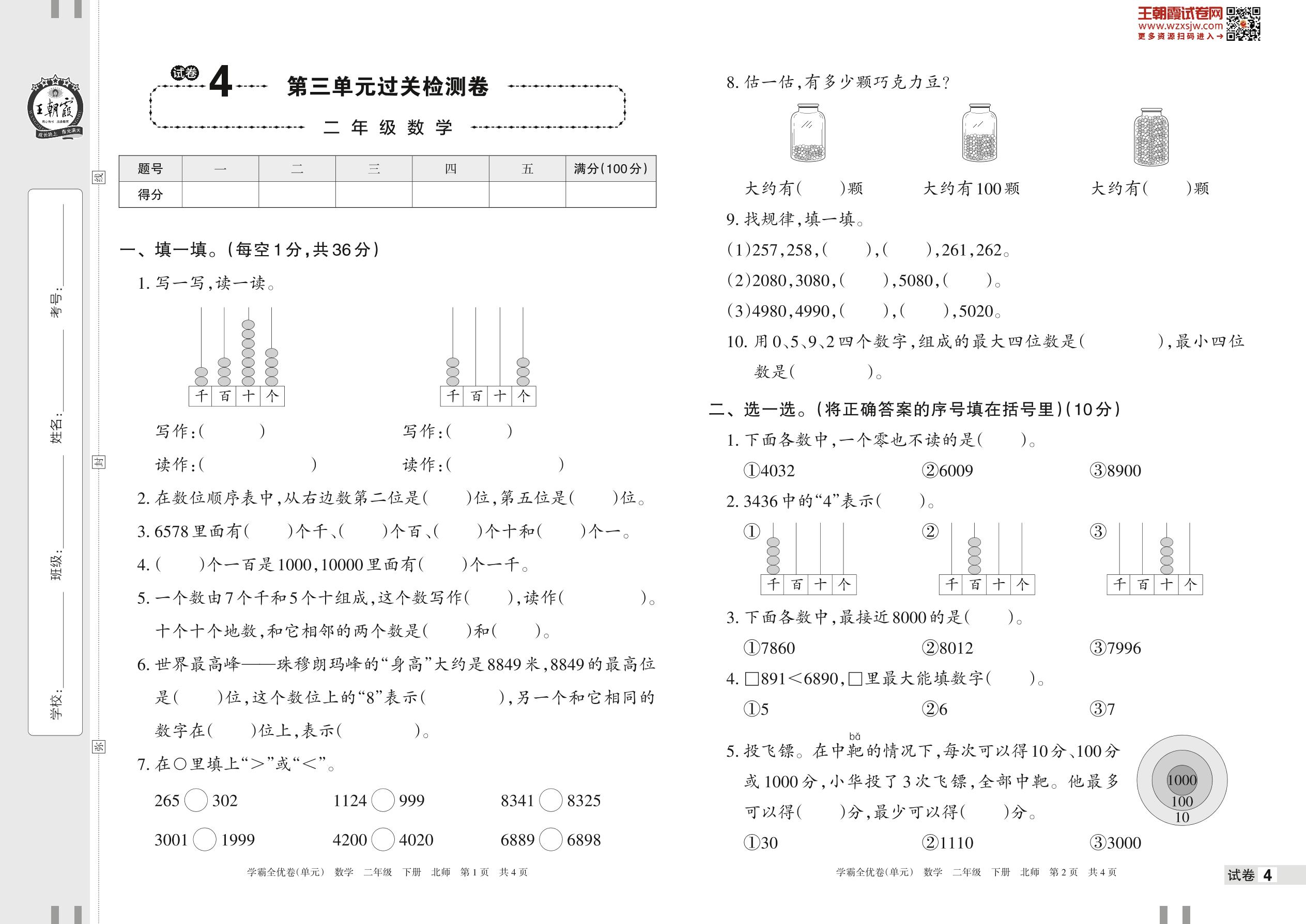 2023下册二年级数学北师版 试卷4 第三单元过关检测卷