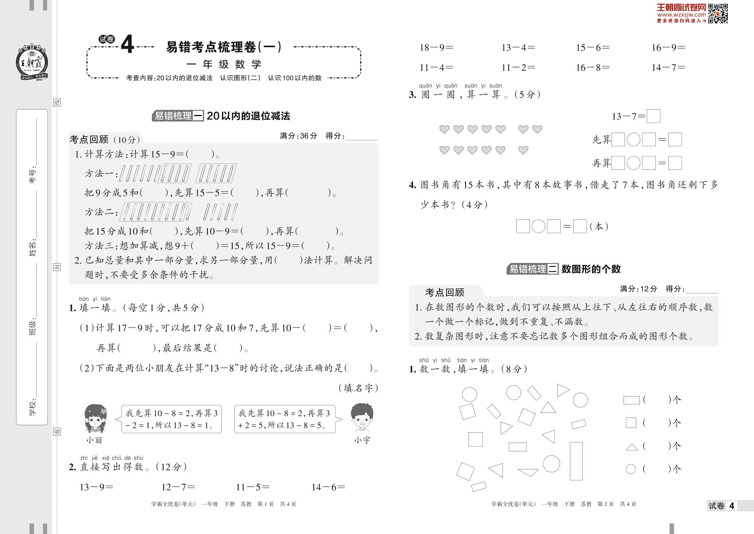 2023下册一年级数学苏教版 试卷4 易错考点梳理卷(一)