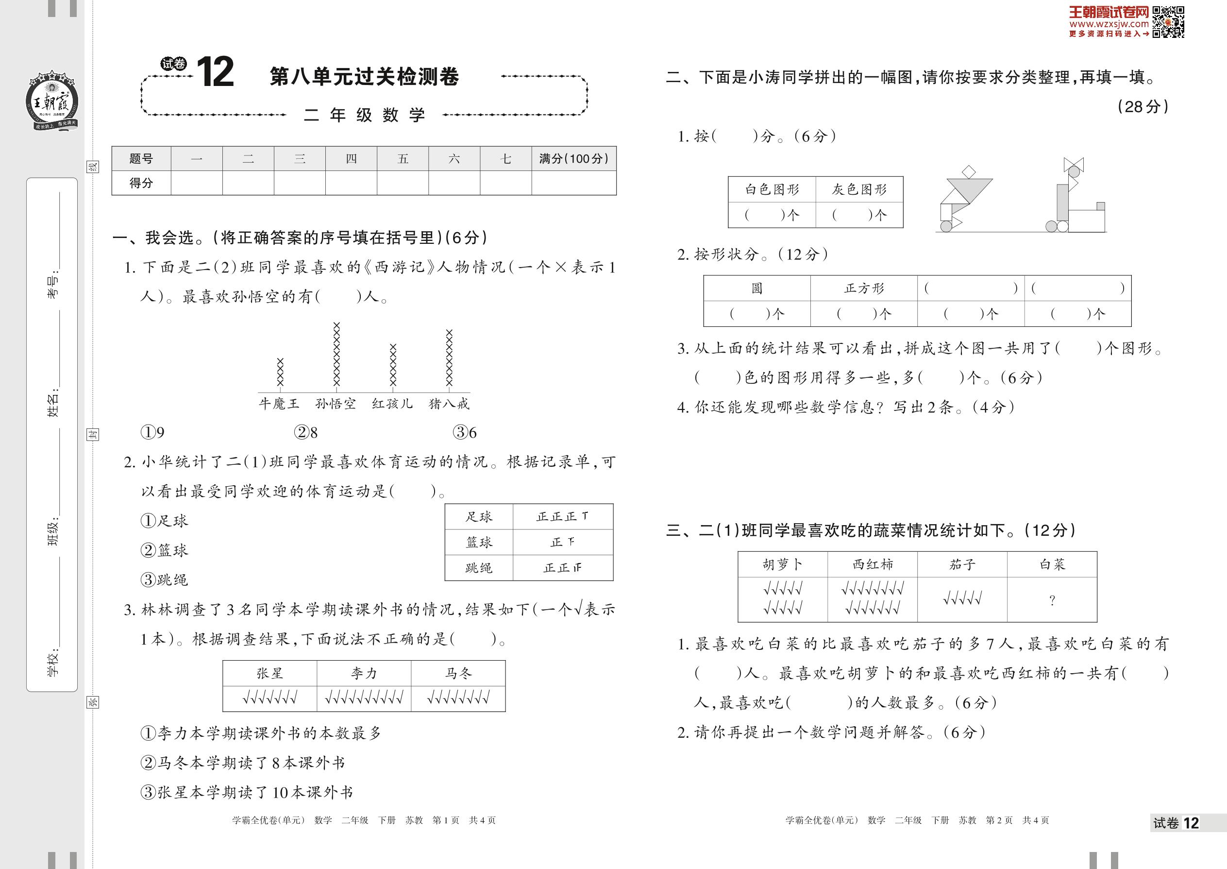 2023下册二年级数学苏教版 试卷12 第八单元过关检测卷