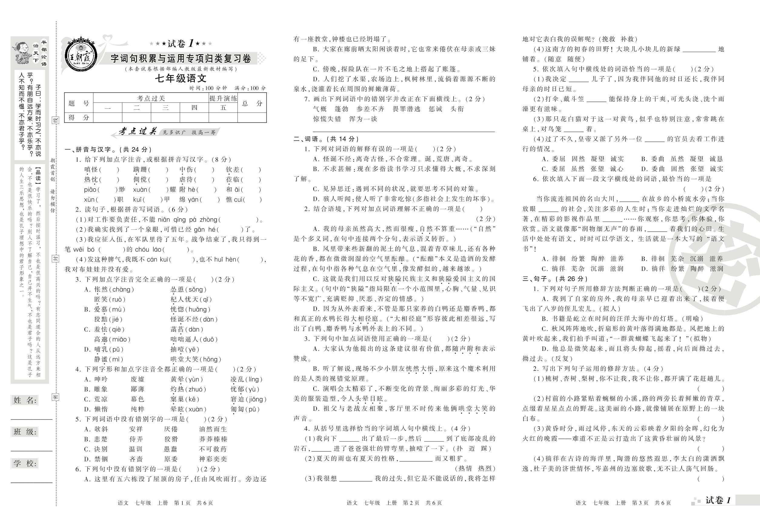 王朝霞期末专项卷七年级上册语文(人教版)_R210802144611【1】