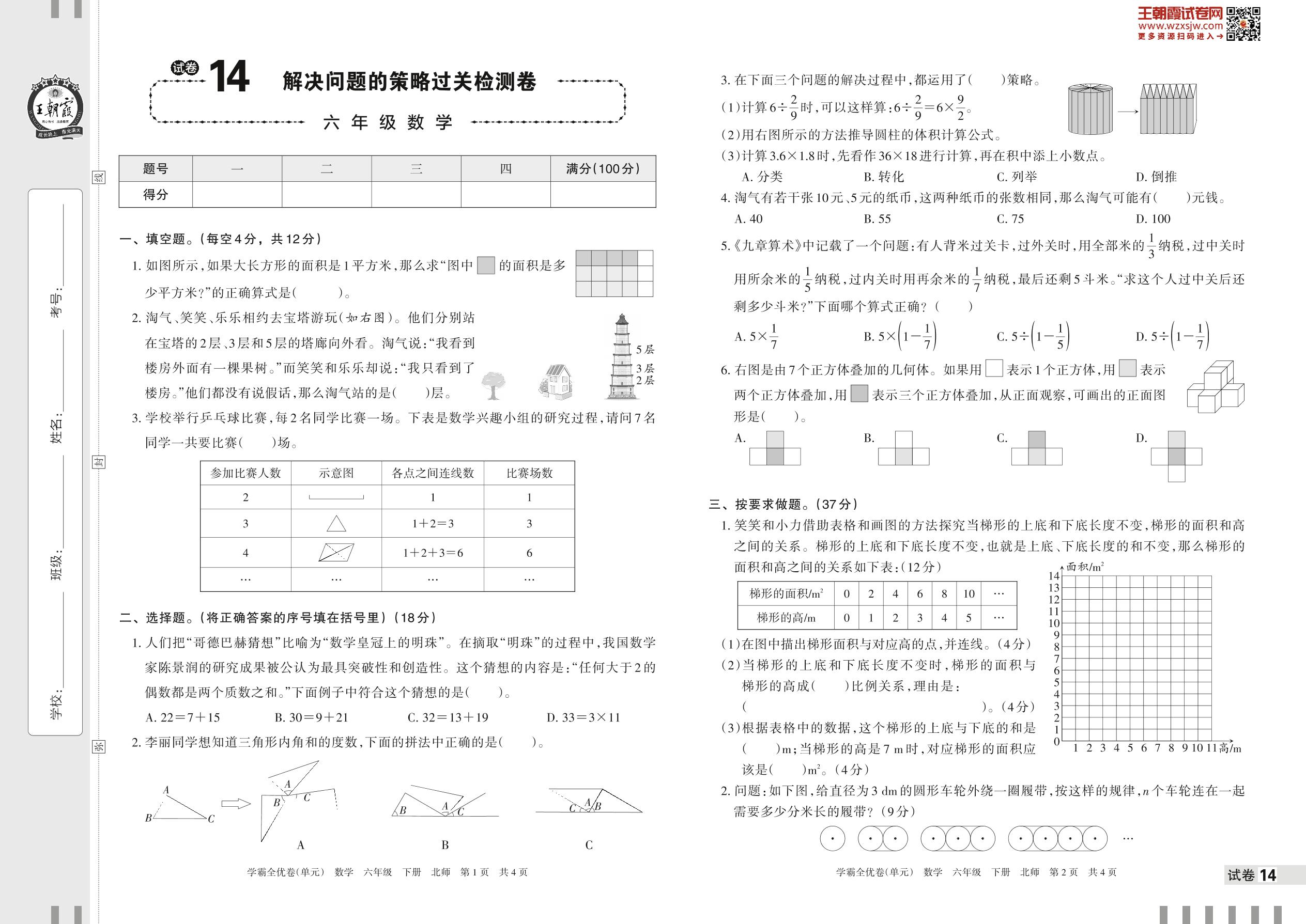 2023下册六年级数学北师版 试卷14 解决问题的策略过关检测卷
