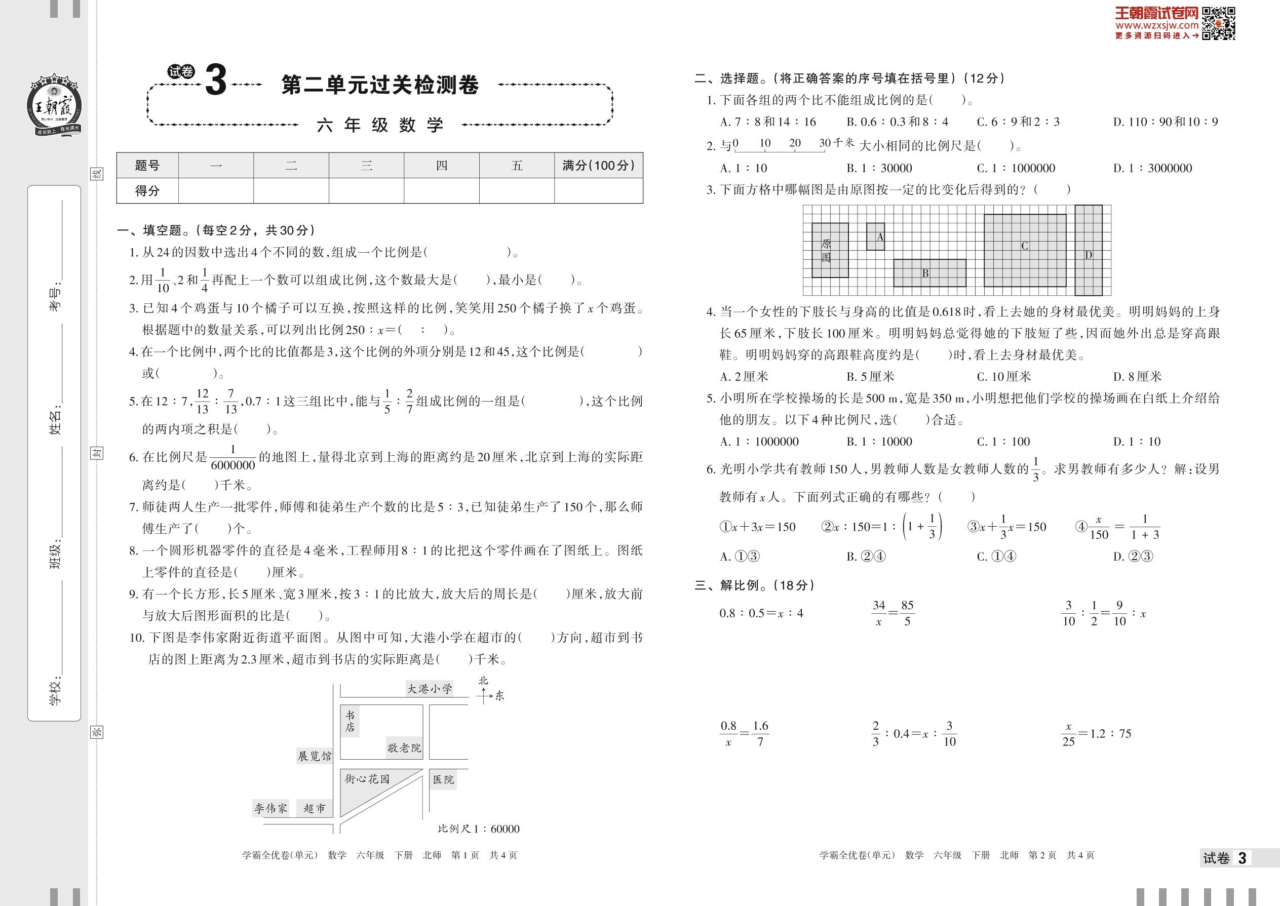 2023下册六年级数学北师版 试卷3 第二单元过关检测卷