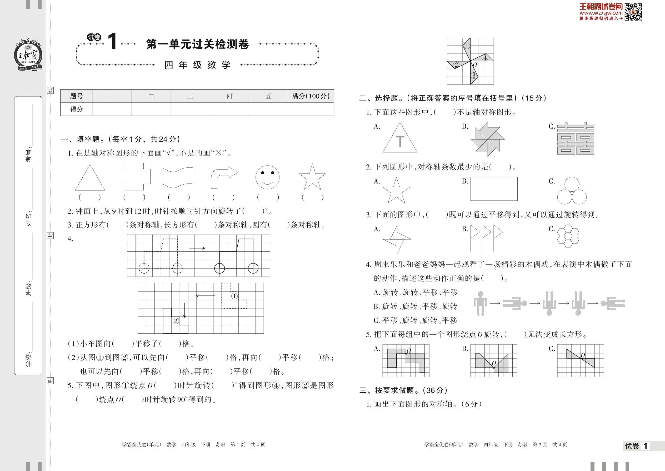 四年级数学苏教版下册单元卷