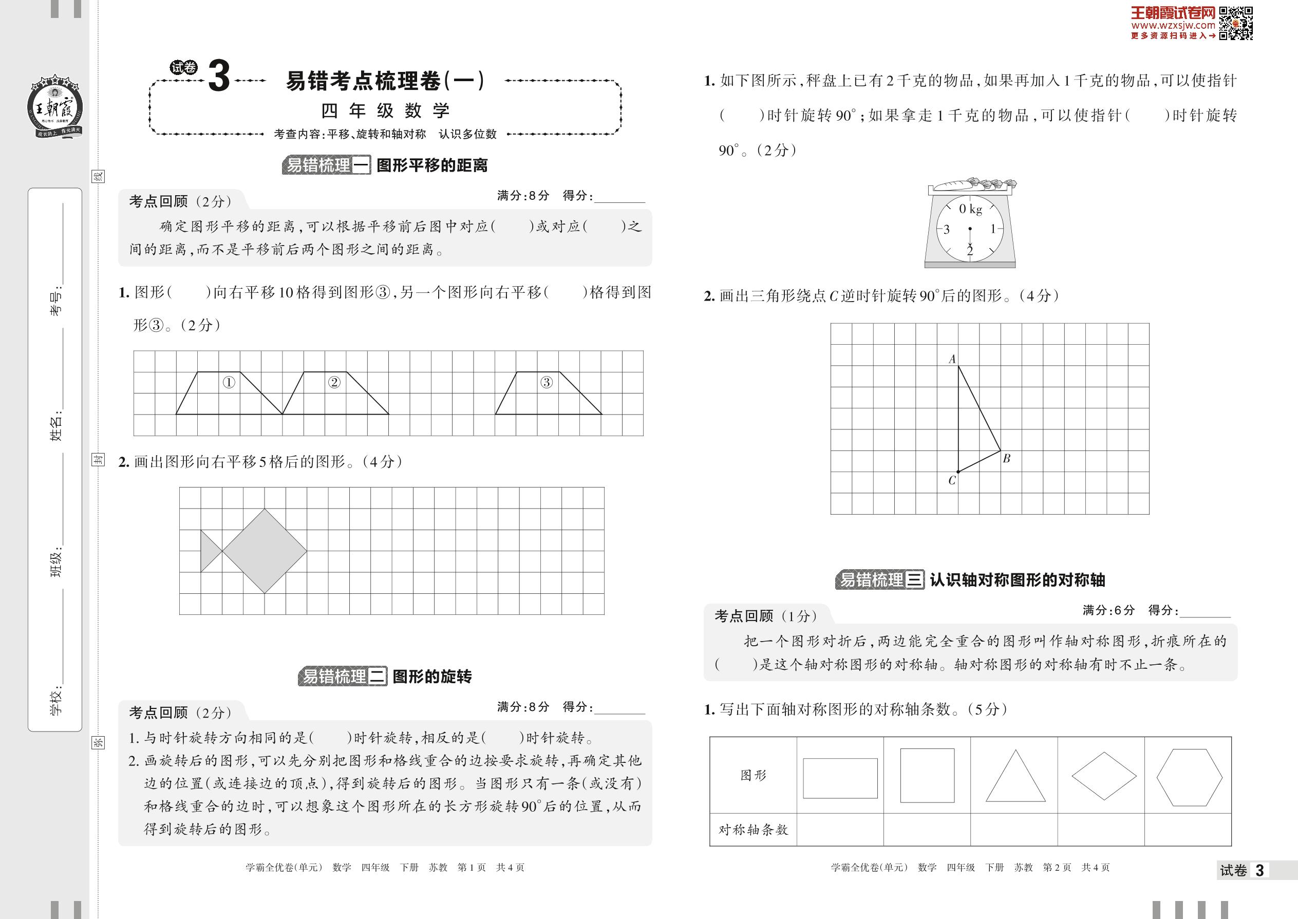 2023下册四年级数学苏教版 试卷3 易错考点梳理卷(一)