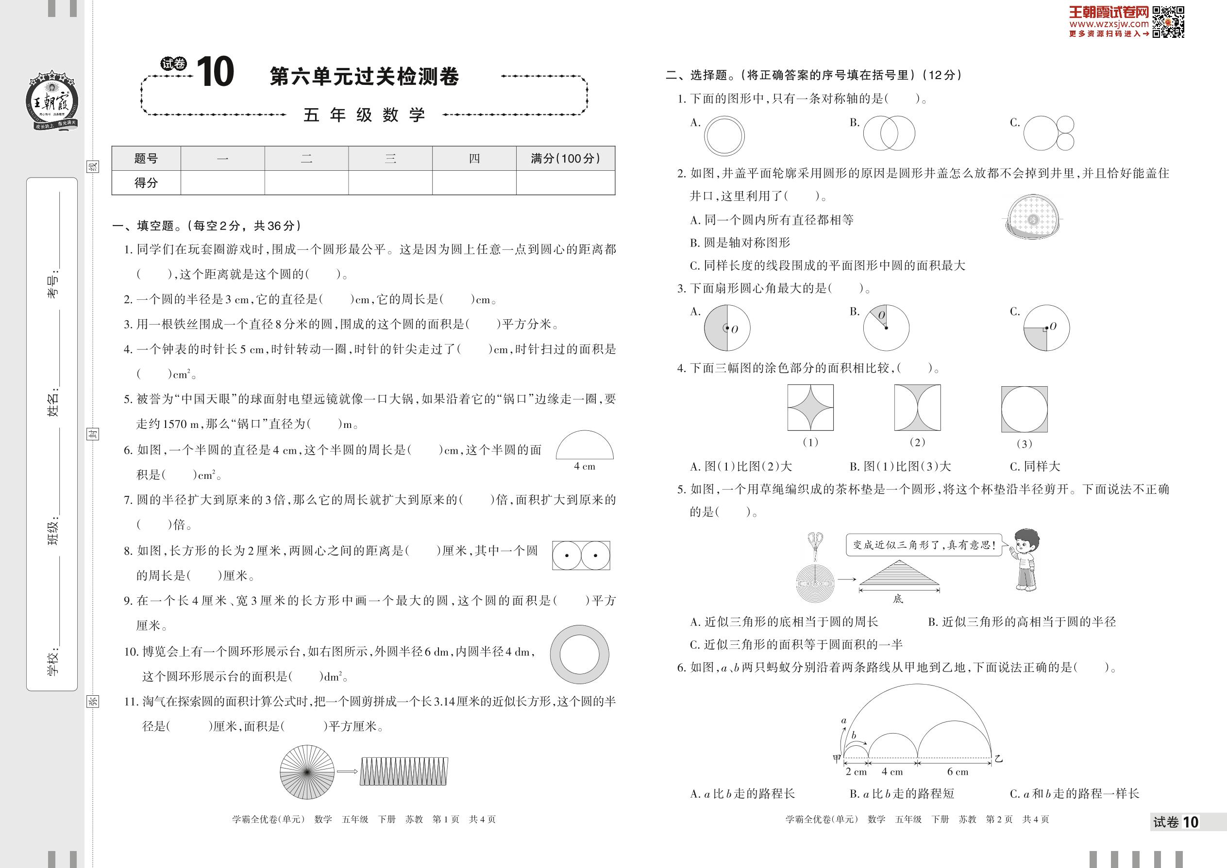 2023下册五年级数学苏教版 试卷10 第六单元过关检测卷