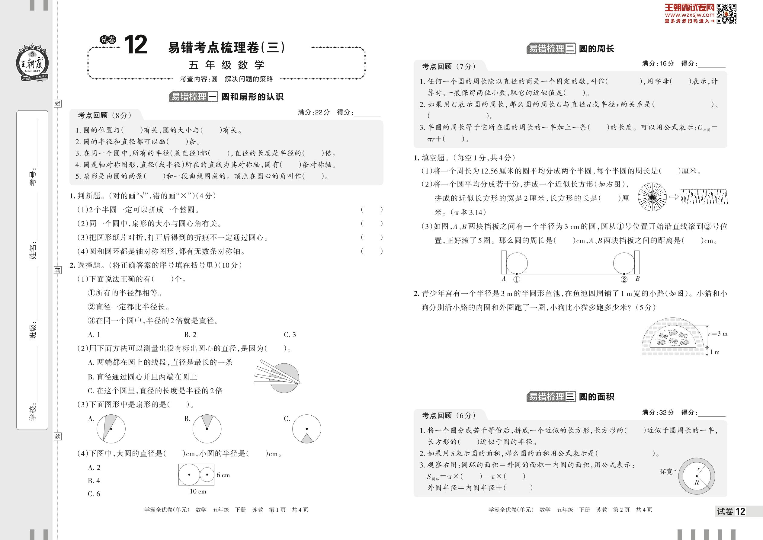 2023下册五年级数学苏教版 试卷12 易错考点梳理卷(三)