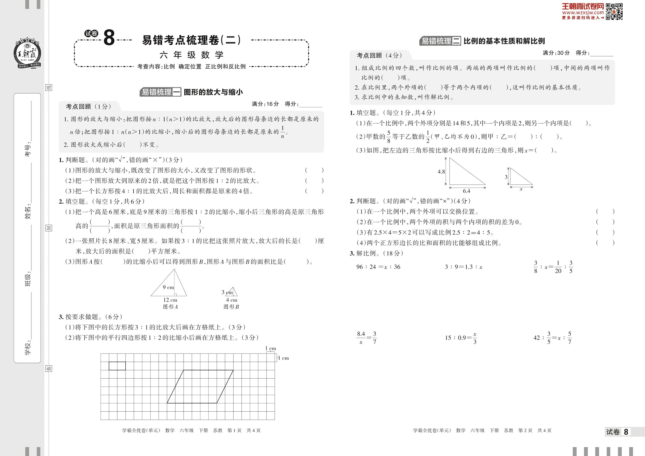 2023下册六年级数学苏教版 试卷8 易错考点梳理卷(二)