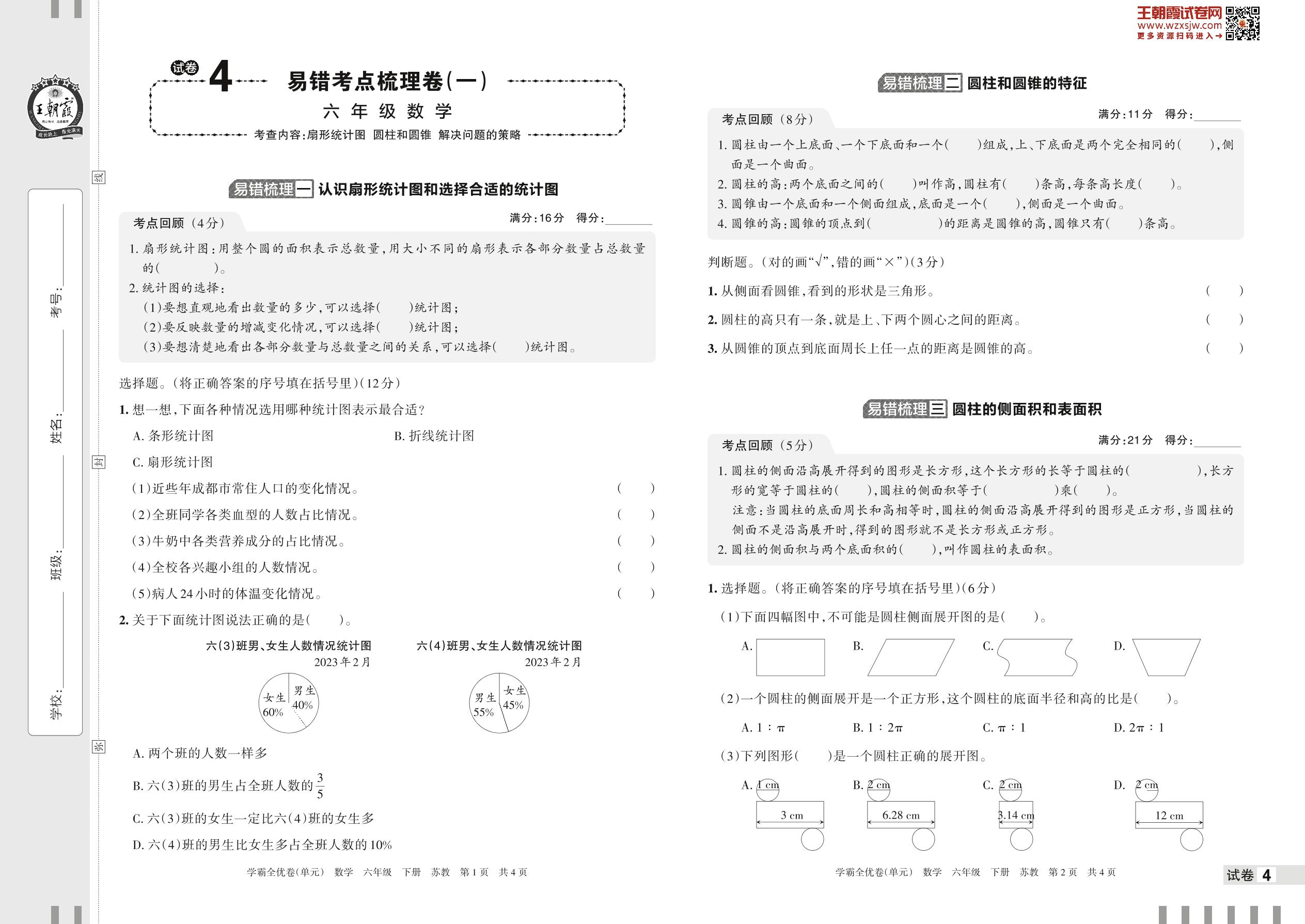 2023下册六年级数学苏教版 试卷4 易错考点梳理卷(一)