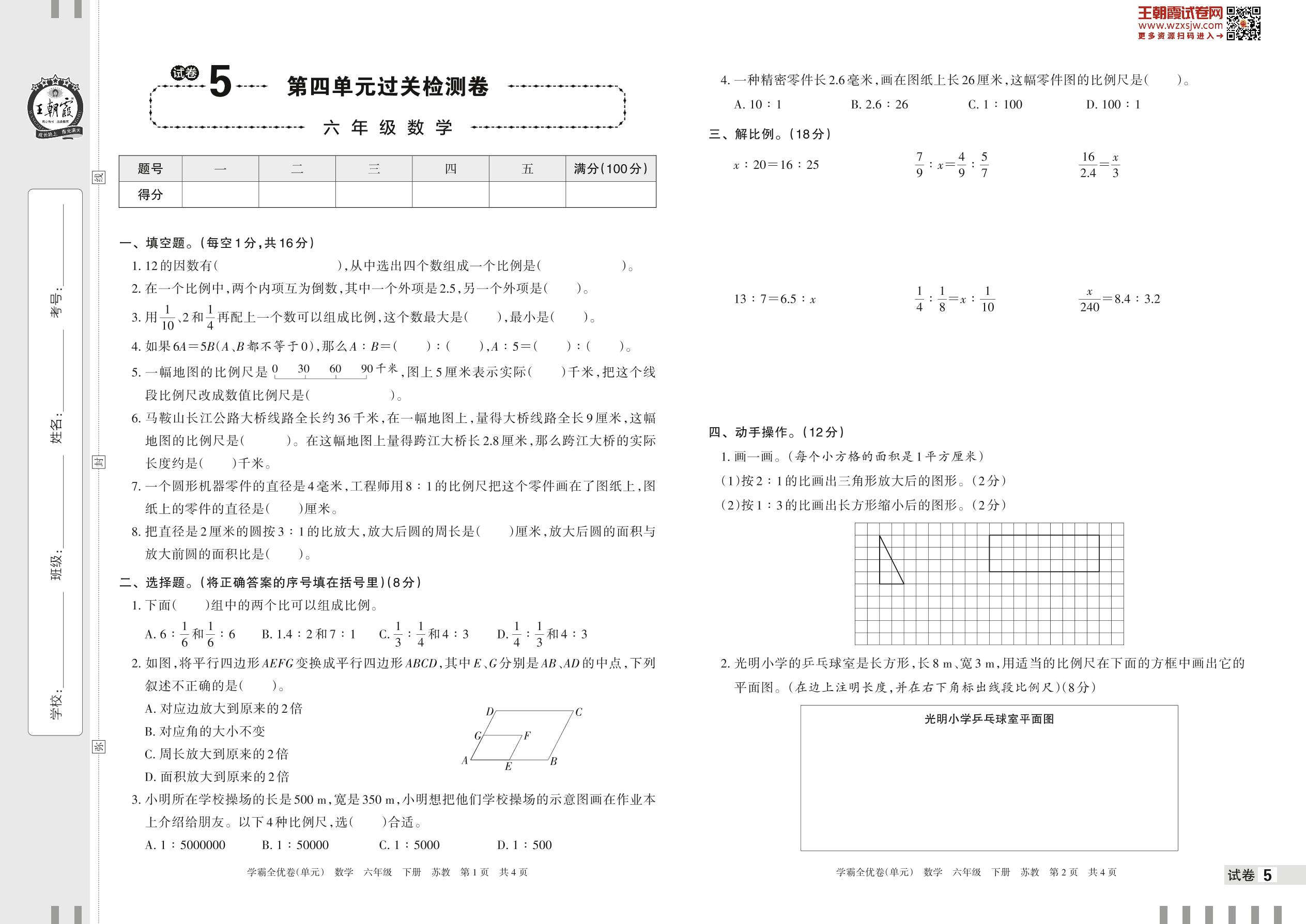 六年级数学苏教版下册单元卷