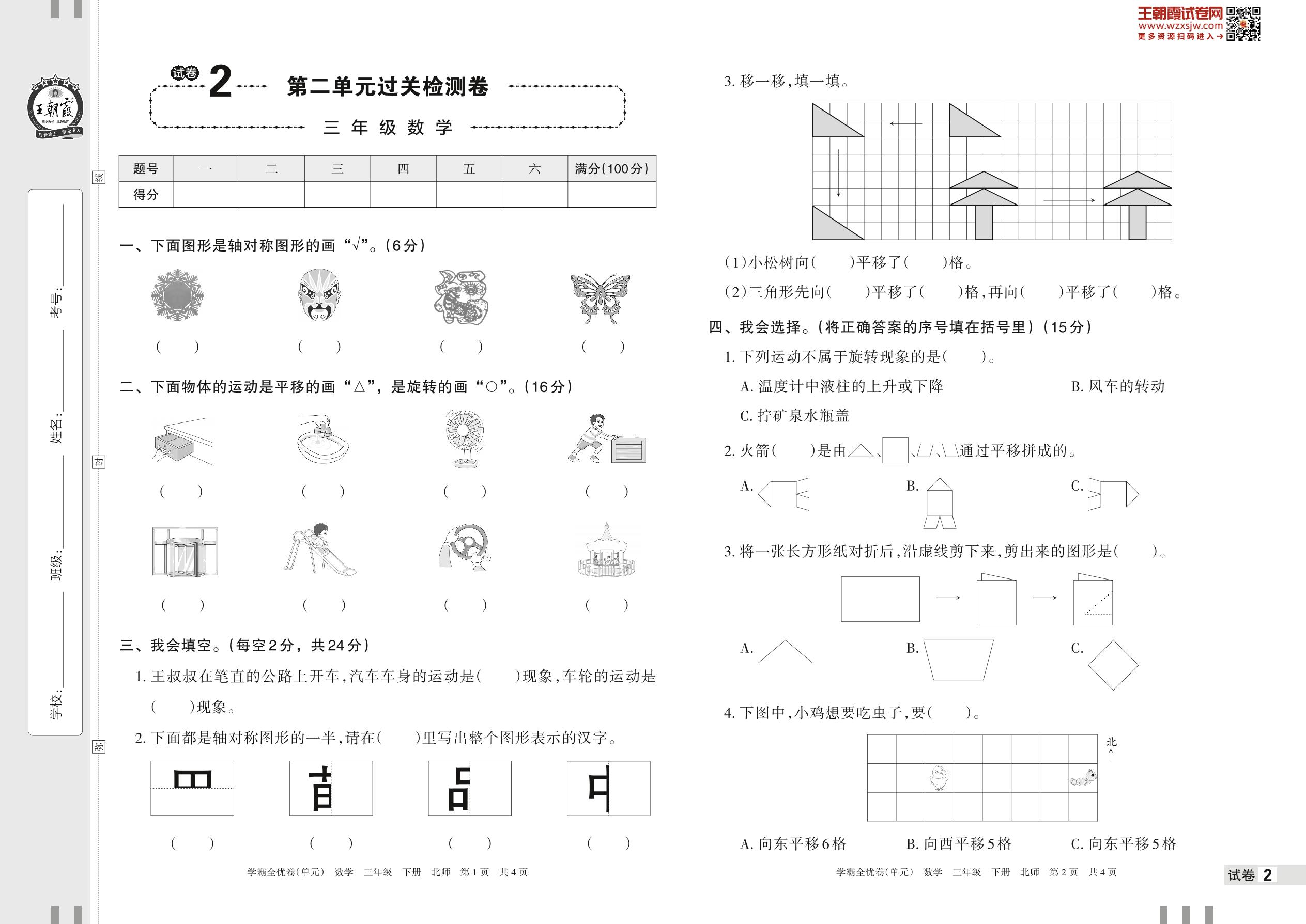 2023下册三年级数学北师版 试卷2 第二单元过关检测卷