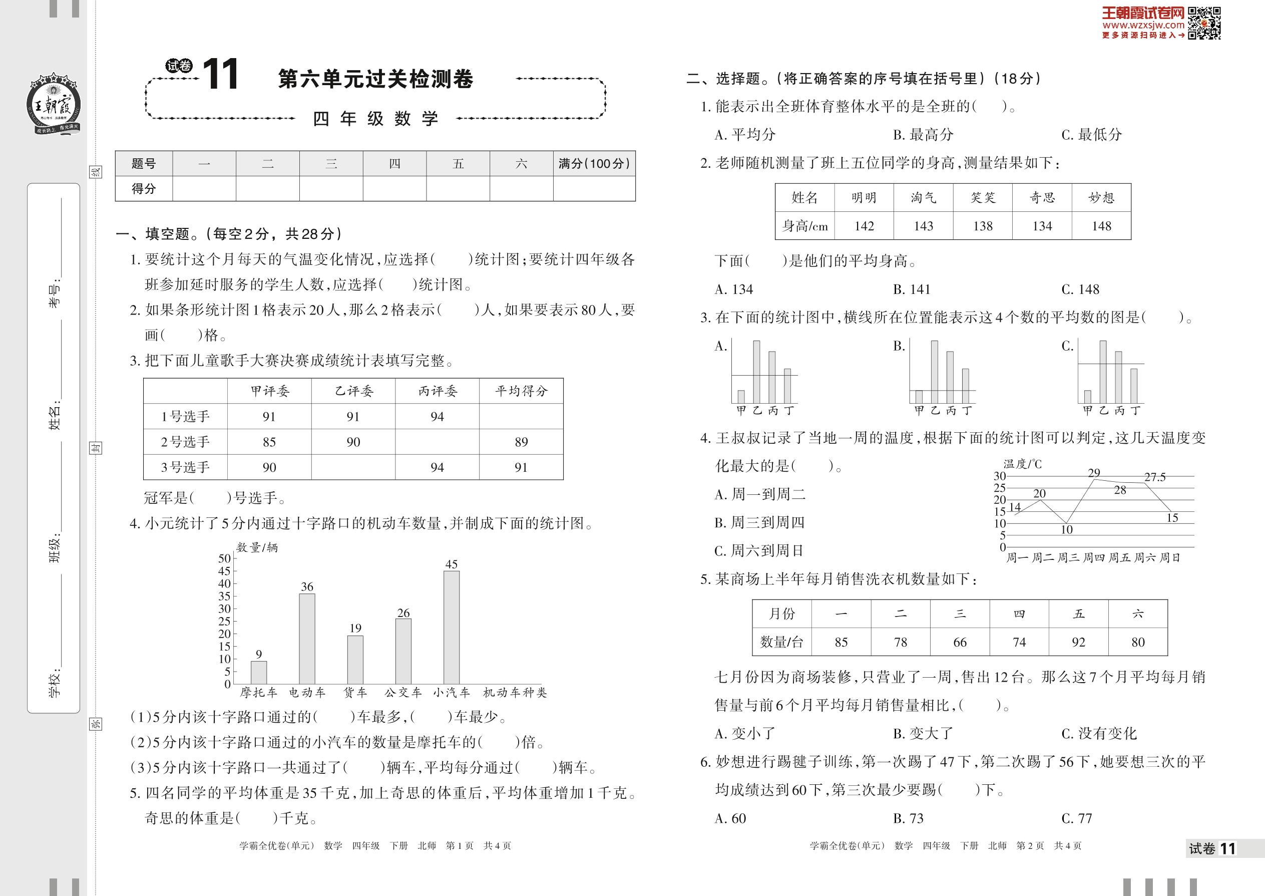 2023下册四年级数学北师版 试卷11 第六单元过关检测卷