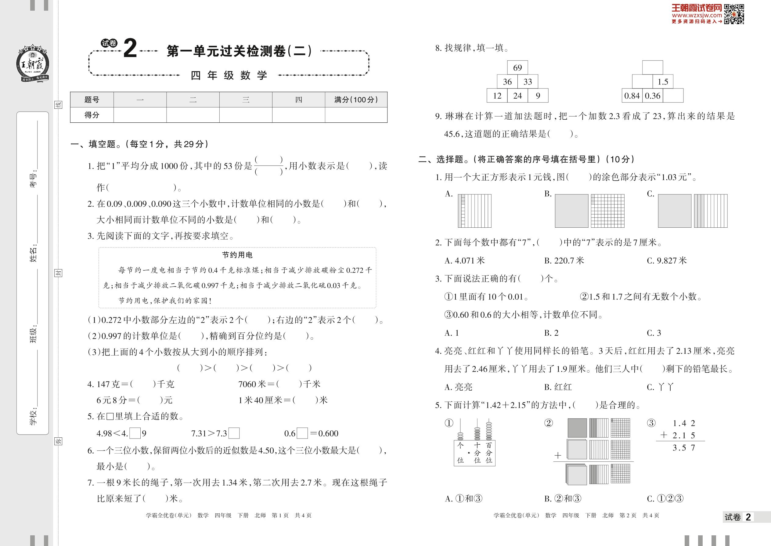 四年级数学北师版下册单元卷