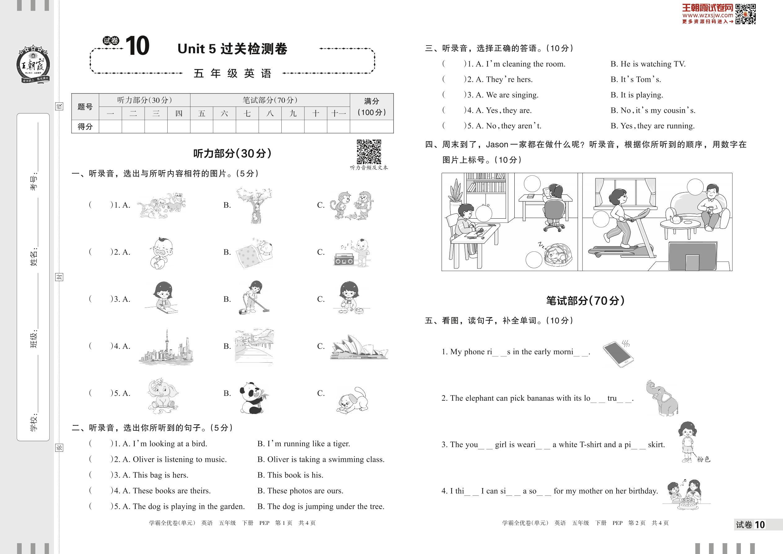 2023下册五年级英语人教PEP版 试卷10 Unit 5 过关检测卷