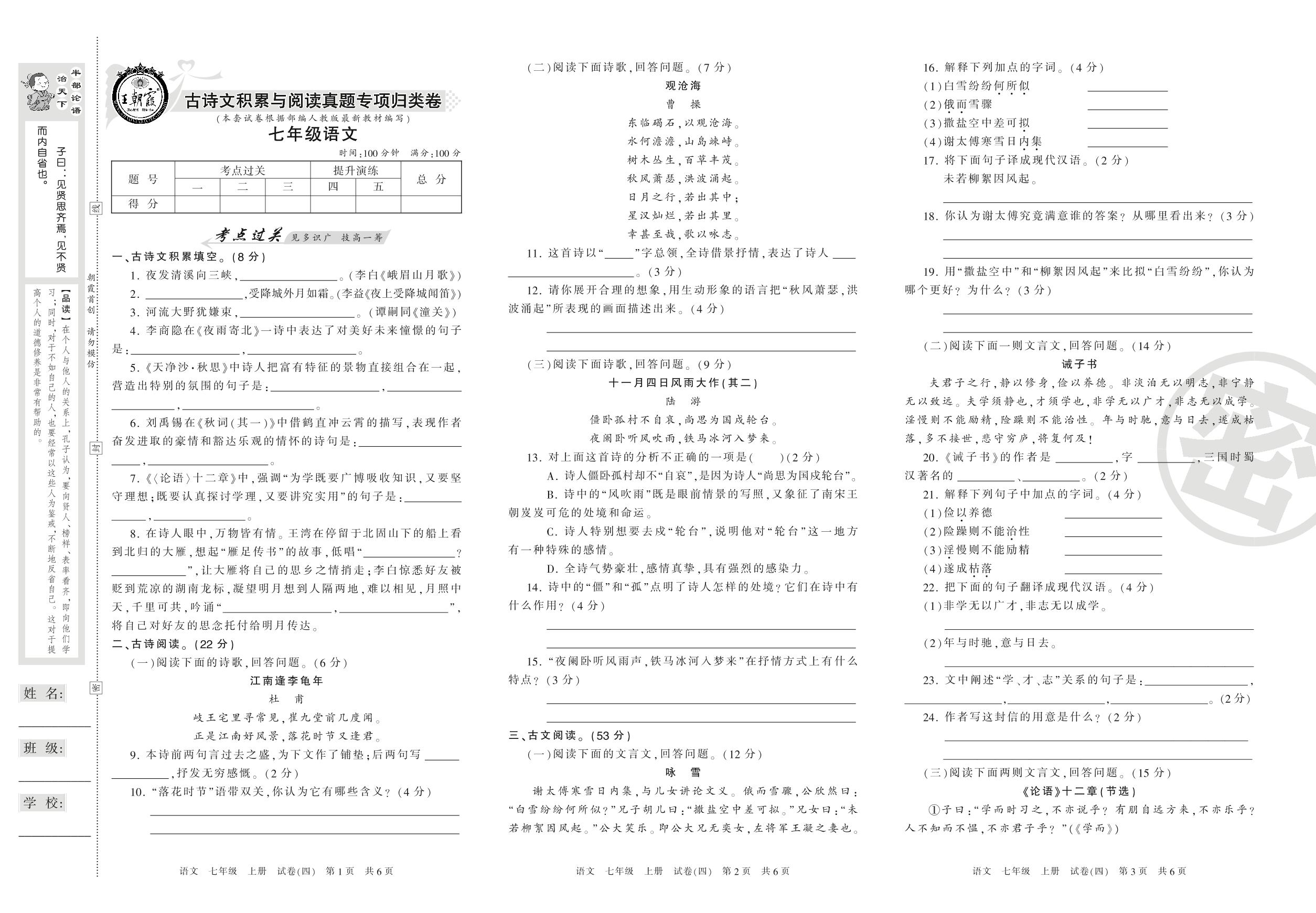 王朝霞期末专项卷七年级上册语文(人教版)_R210802150955【4】