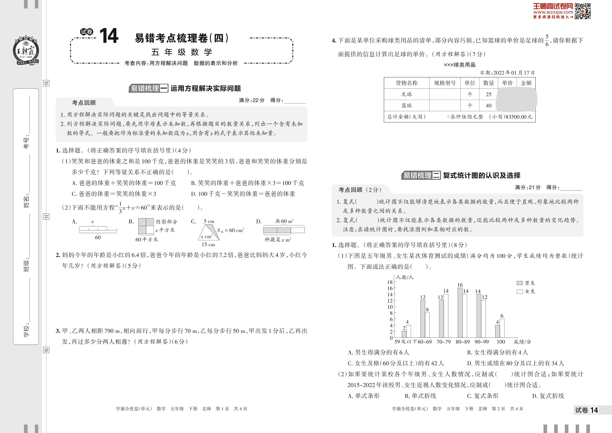 2023下册五年级数学北师版 试卷14 易错考点梳理卷(四)